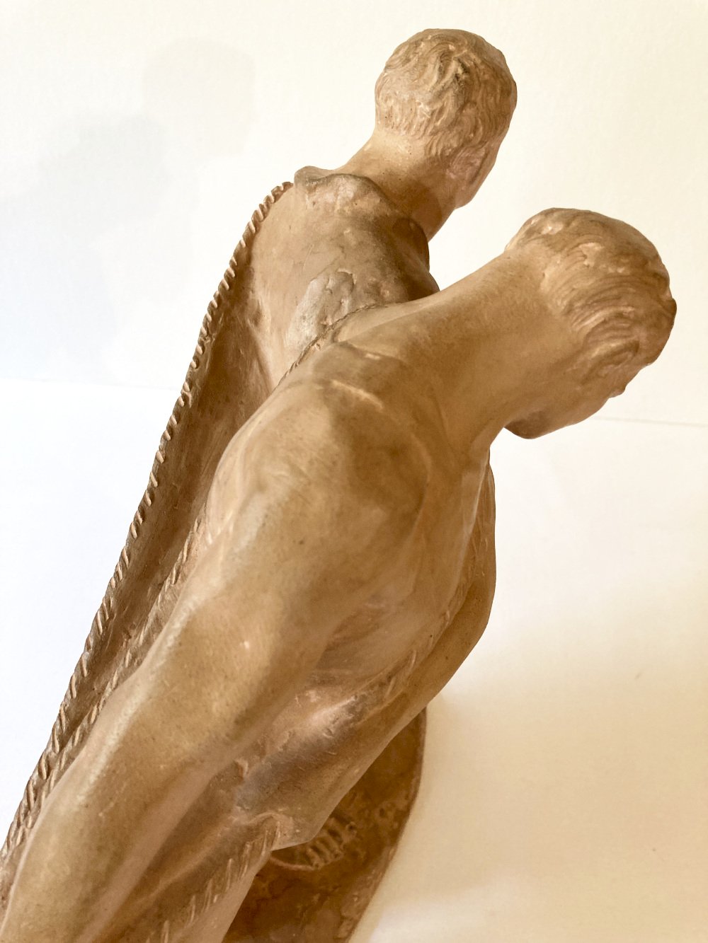 Clay sculpture "The Haulers", signed JC Guéro, 1920s-30s
