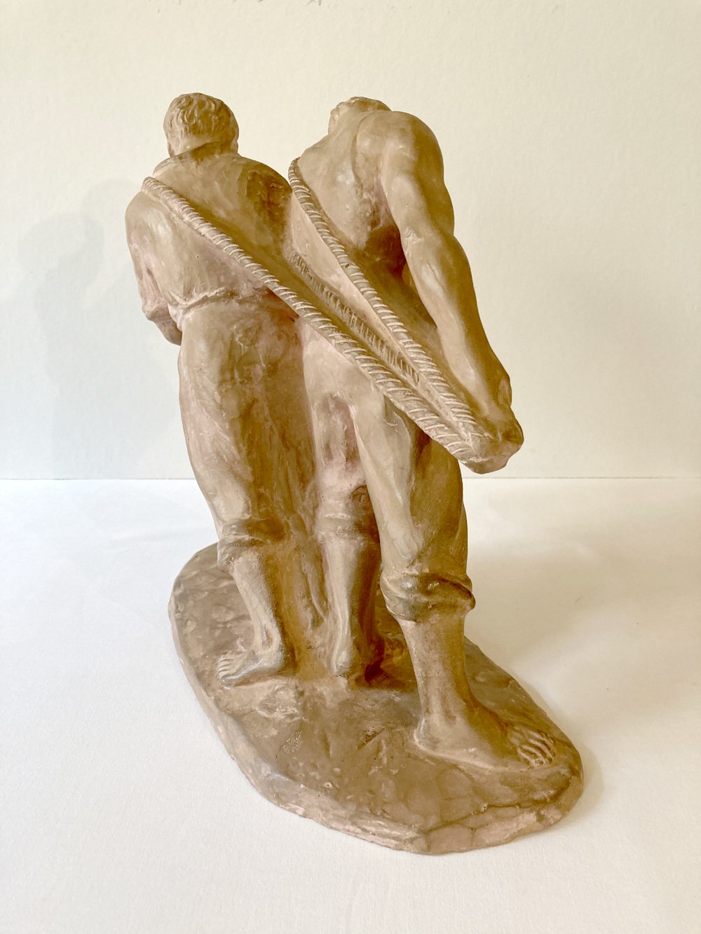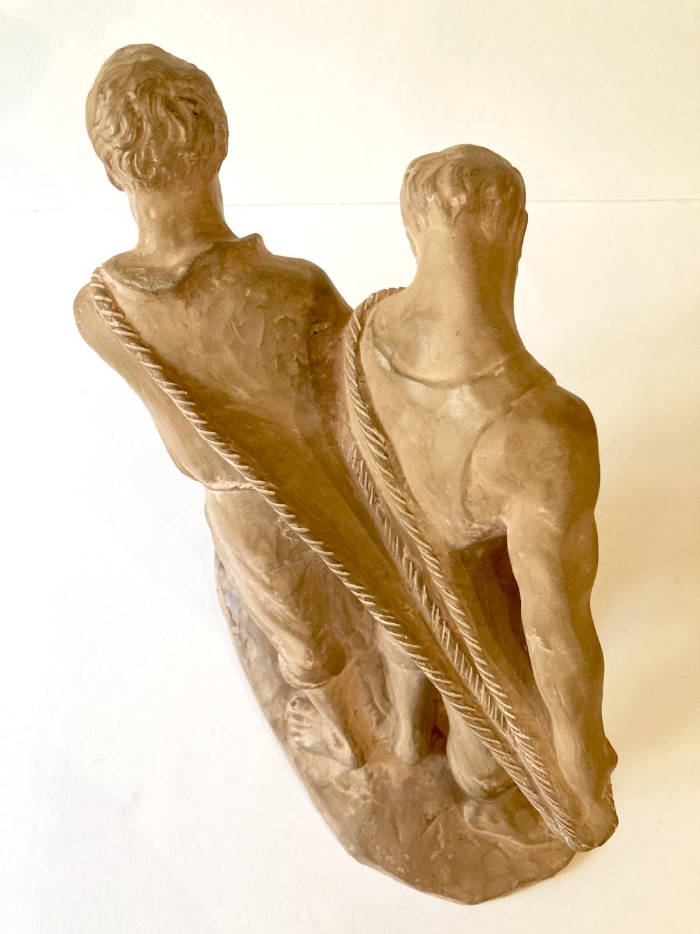 Clay sculpture "The Haulers", signed JC Guéro, 1920s-30s Beige/Natural Terracotta