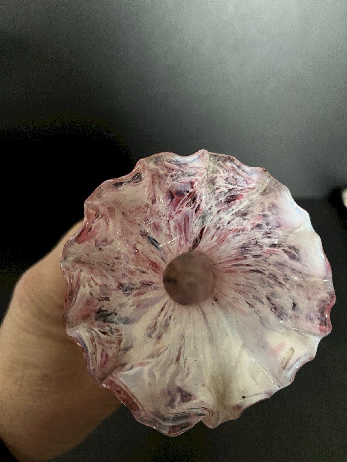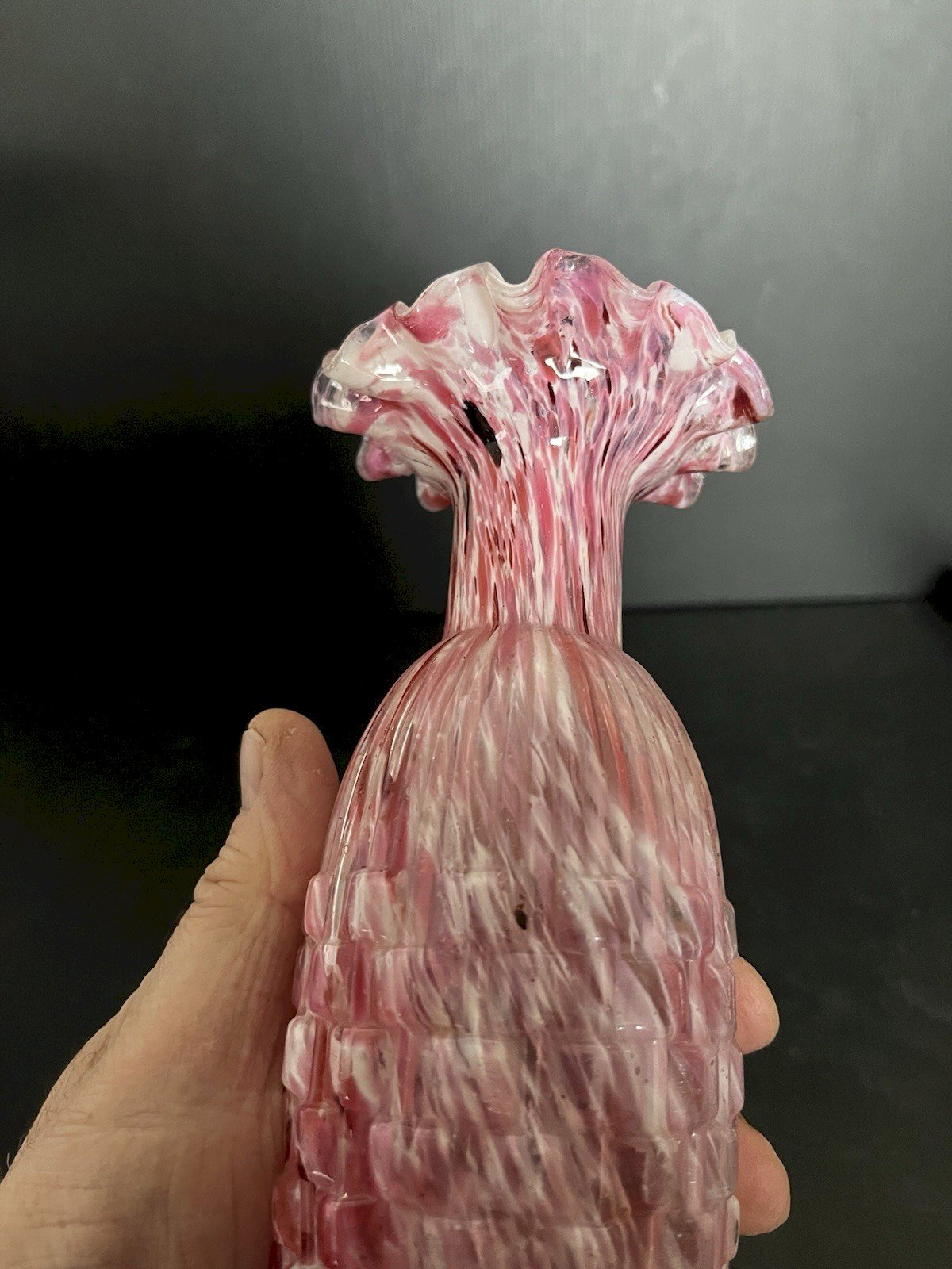 Beautiful pink and white glass vase with a collar, weaving style, certainly Clichy. Good condition, height 22.50 cm, base diameter 6 cm, inner neck diameter 2 cm, weight 450 gr. Please look at the photos above, which will also serve as a description. Careful and secure packaging is provided, with the option to send via post, which can be selected during your purchase for shipping cost calculation. (Otherwise, a standard Mondial Relay shipment will be used.) Thank you all, and happy hunting in my store. Returns accepted within 14 days from receipt, must be in original packaging and in original condition; no refunds for items returned damaged or lost by the carrier. Returns are at the buyer's expense. Don't hesitate to add my shop to your favorites!