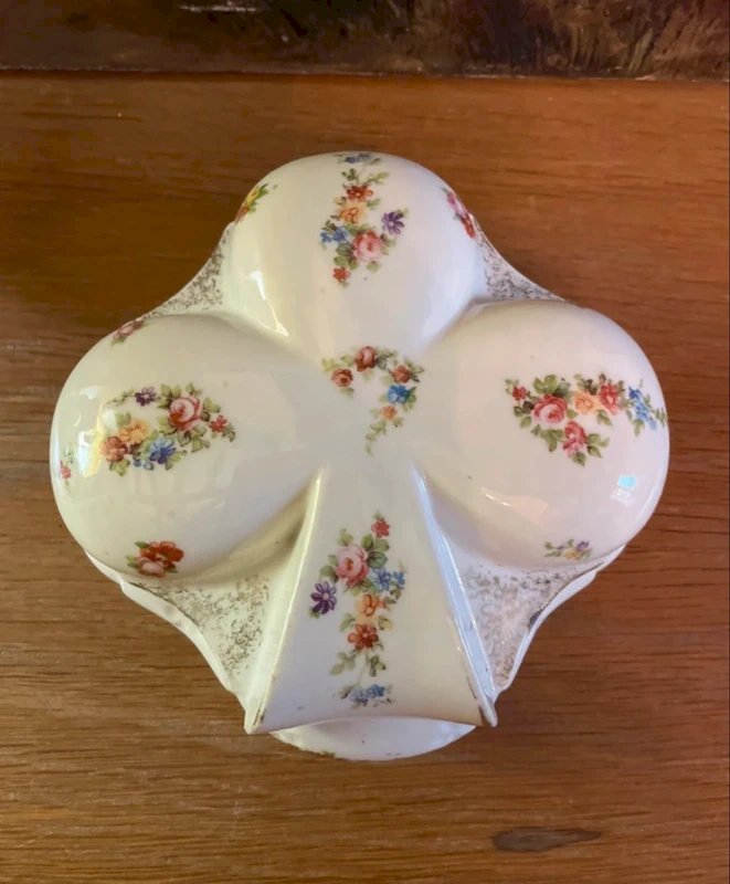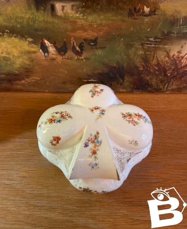 Old porcelain candy box in the shape of a clover ☘️ Very good condition Width 14x14cm, height 8.5cm