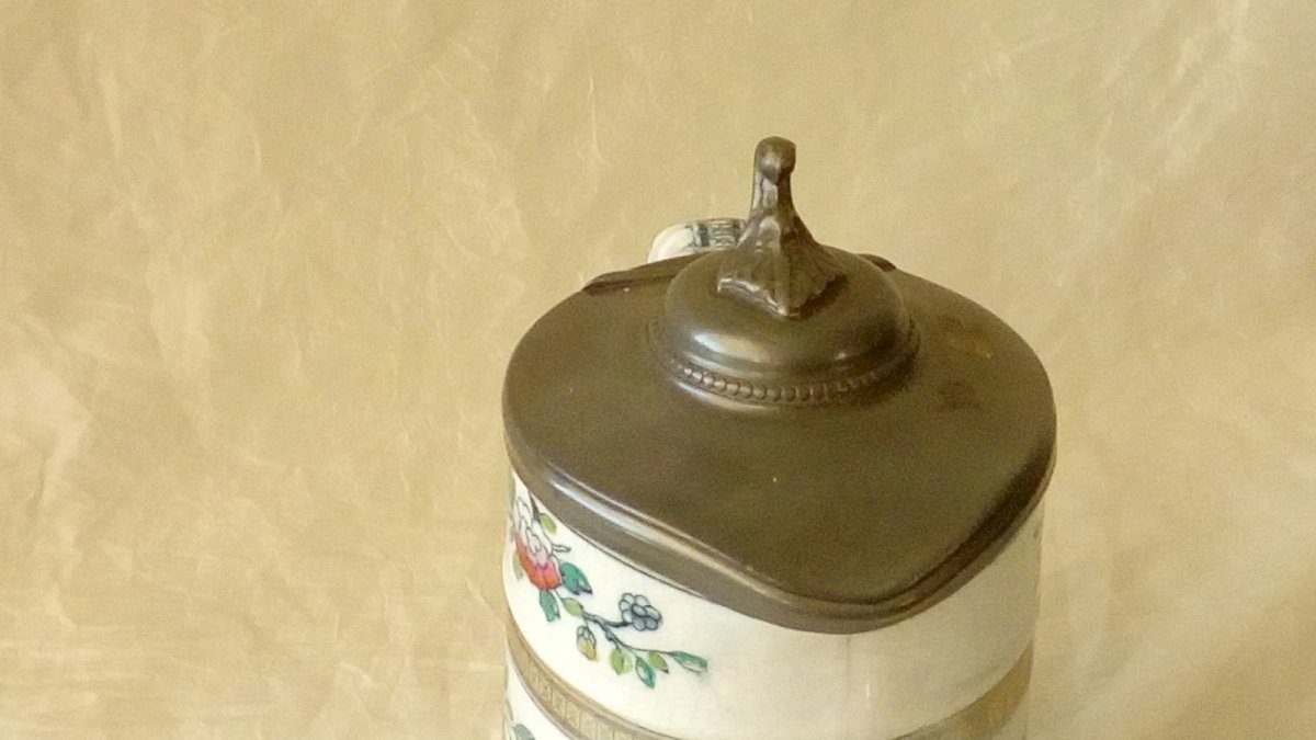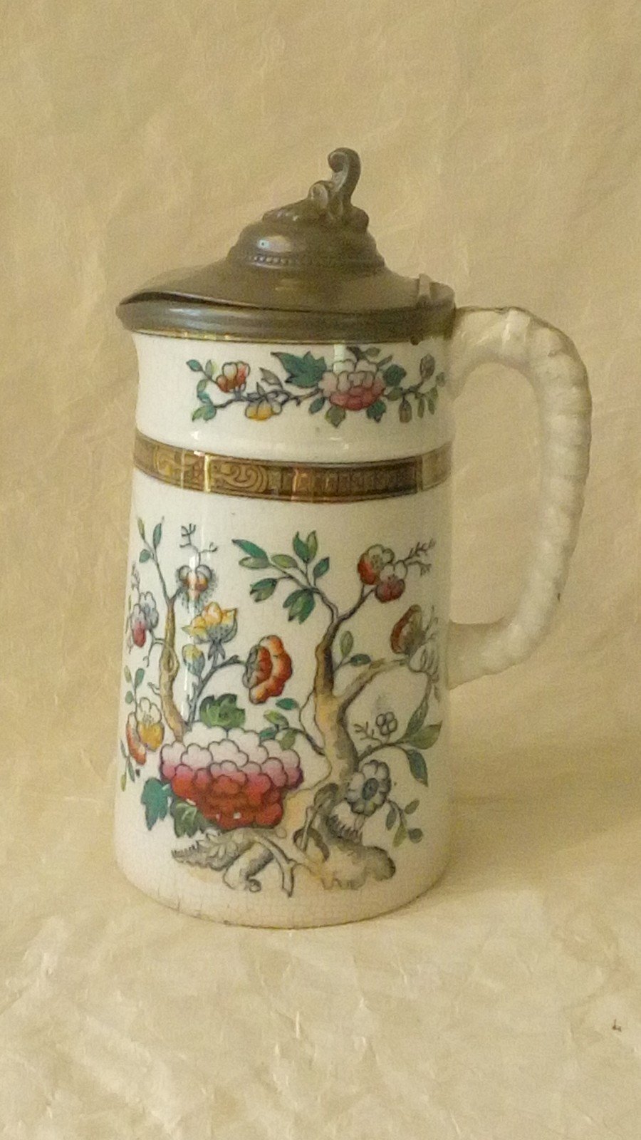 ANCIENT CRACKLED POTTERY PITCHER WITH PEWTER COALPORT INDIAN TREE ORIGIN UNITED KINGDOM HEIGHT 19 cm WIDTH 8.50 cm WITHOUT HANDLE DIAMETER 7.50 cm IN GOOD CONDITION Country of manufacture: United Kingdom