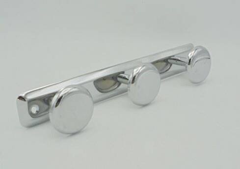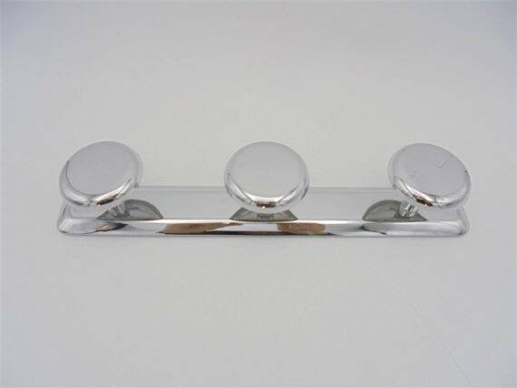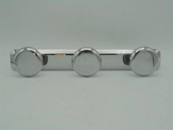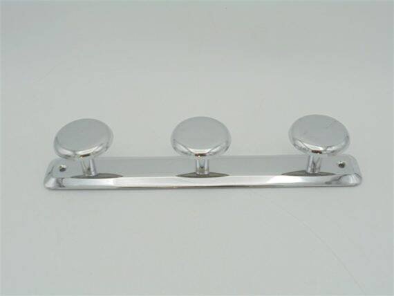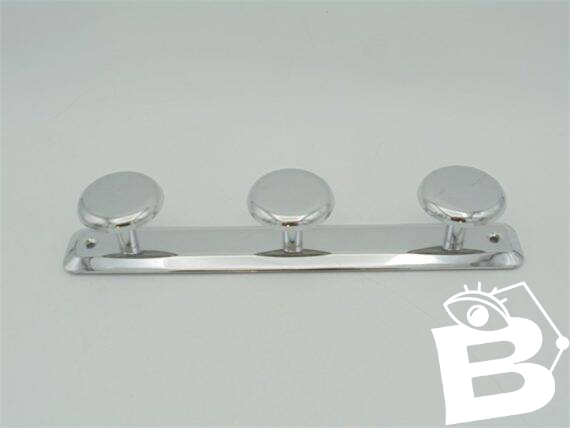 Chrome coat rack, equipped with 3 hooks, one of which is striped (see photo). Supplied with 2 fixing screws. Width: 30 cm. Height: 5.5 cm. Depth: 5 cm. Weight: 180 g. L: 30 l: 5 H: 5