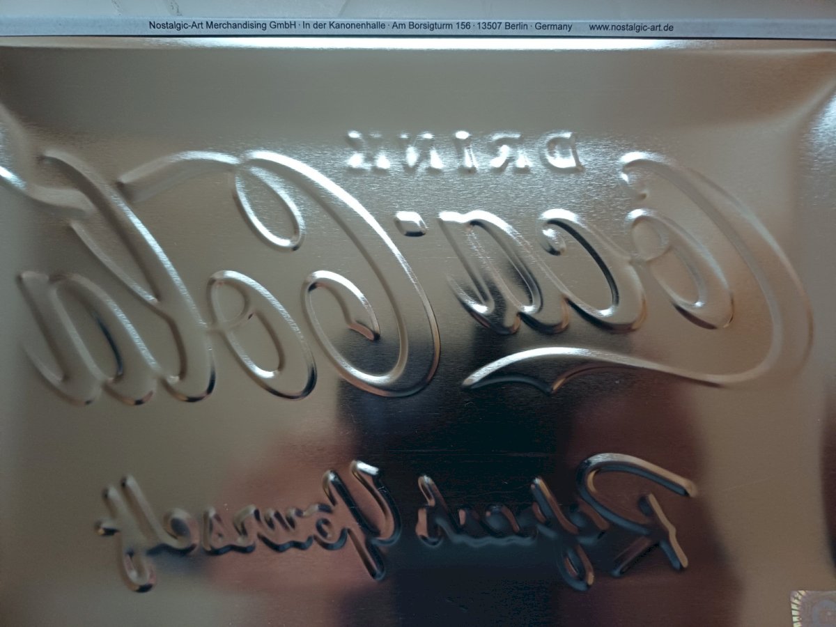 COCA COLA for a vintage decoration of your interiors, house, garage. Raised metal plaque, 30 x 20 cm, with holes in the corners for easy wall mounting. NEW PLAQUE Recommended products Provided by Chevrolet metal sign - 40 x 30 cm USA decor See product Chevrolet BEL AIR 1956 metal sign - 40 x 30 cm vintage USA decor See product CHEVROLET SUPER SERVICE metal sign - 40 x 30 cm USA decor See product MOPAR metal sign - 40 x 30 cm USA decor See product PONTIAC FIREBIRD metal sign - 40 x 30 cm USA vintage car decor See product PONTIAC V8 metal sign - 40 x 30 cm USA vintage car decor See product PONTIAC logo metal sign - 40 x 30 cm USA vintage car decor See product LAST STOP GASOLINE motorcycle metal sign - 40 x 30 cm vintage USA decor See product Condition: New: Item new and unused, never opened. Check the seller's listing for more details. New: Item new and unused, never opened. Check the seller's listing for more details. Original/reproduction: Reproduction Type: Raised plaque Origin: Germany Period: 2000s and later Country of origin: Germany Features: Raised design Theme: Soft drink Edition: Reissue Shape: Rectangular Product: coca cola