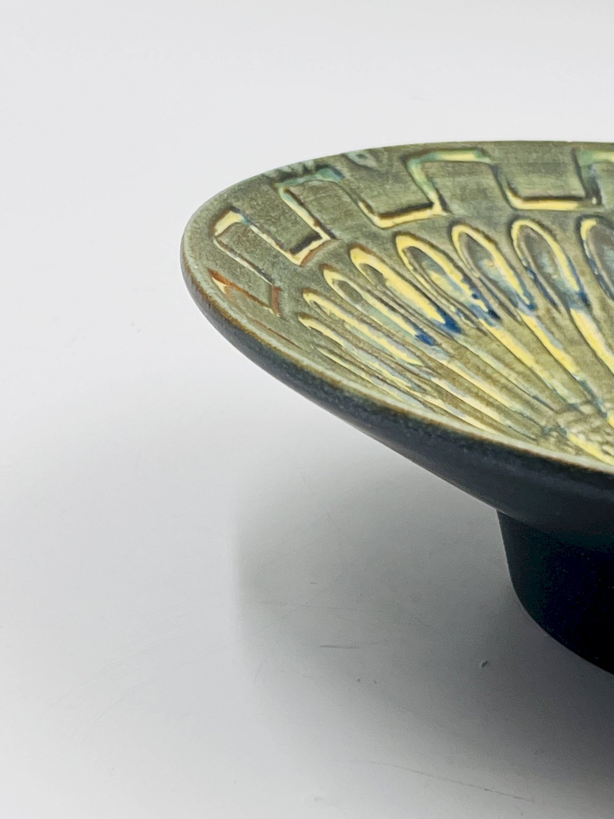 While production focused on advertising pieces, bowls, and ashtrays, it also produced vases, jugs, and various decorative items. Made of high-quality ceramic, ensuring durability and elegance. Features a unique design that reflects a vintage aesthetic, ideal for collectors and enthusiasts. The intricate details and rich colors of the bowl add a touch of sophistication to any decor. Add this remarkable piece to your collection and let it enhance your home with its timeless charm. Very good condition. Dimensions: 21 X 21 X H 6 cm. L: 21 W: 23 H: 6
