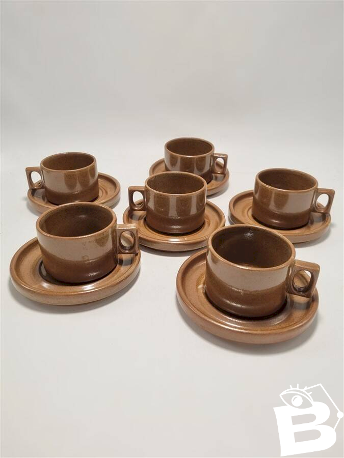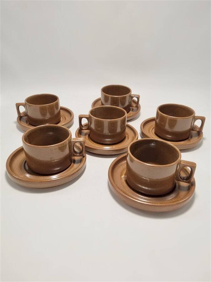 Set of 6 cups and their saucers made of stoneware, stamped "Brenne Gres De Grand Feu France". Dimensions of the cups: 6.5 x 5 cm. Dimensions of the saucers: 11.5 x 1.5 cm. Weight of the lot: approximately 1.4 kg. L: 6.5 W: 4.5 H: 5