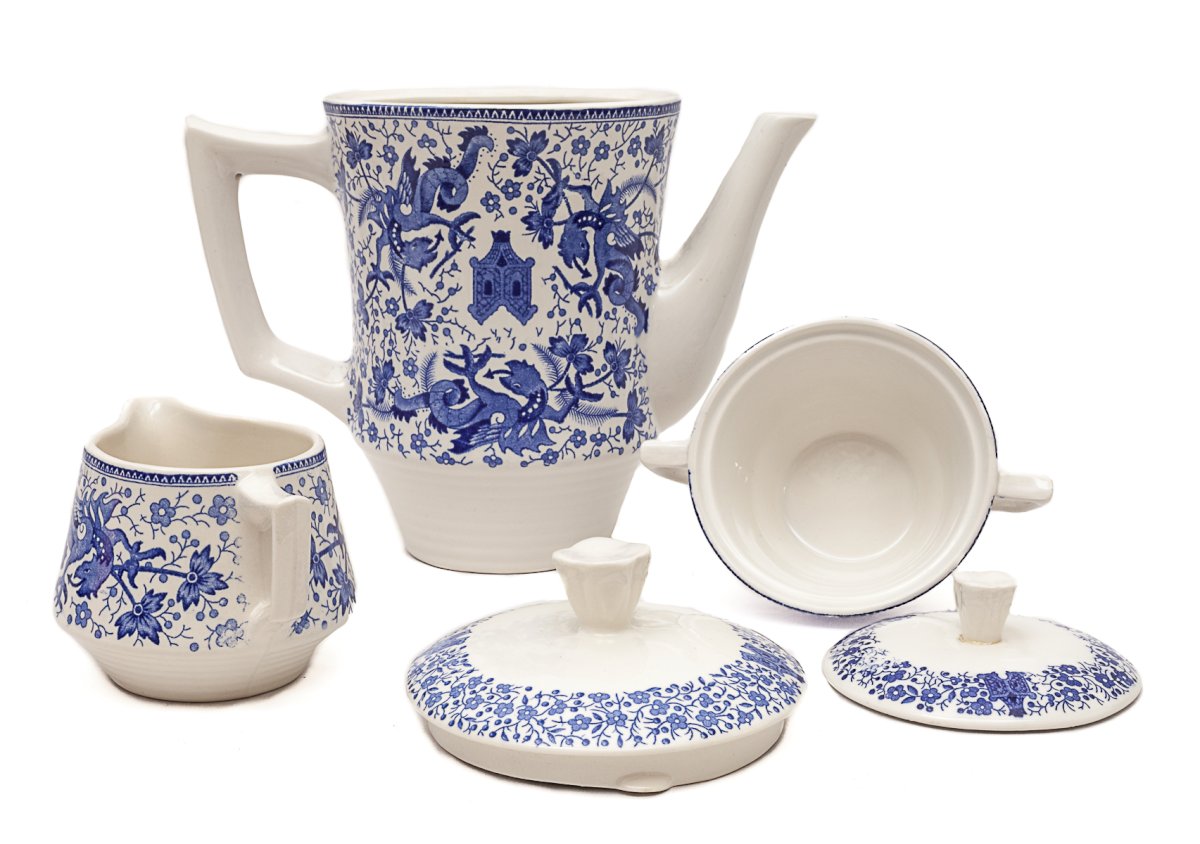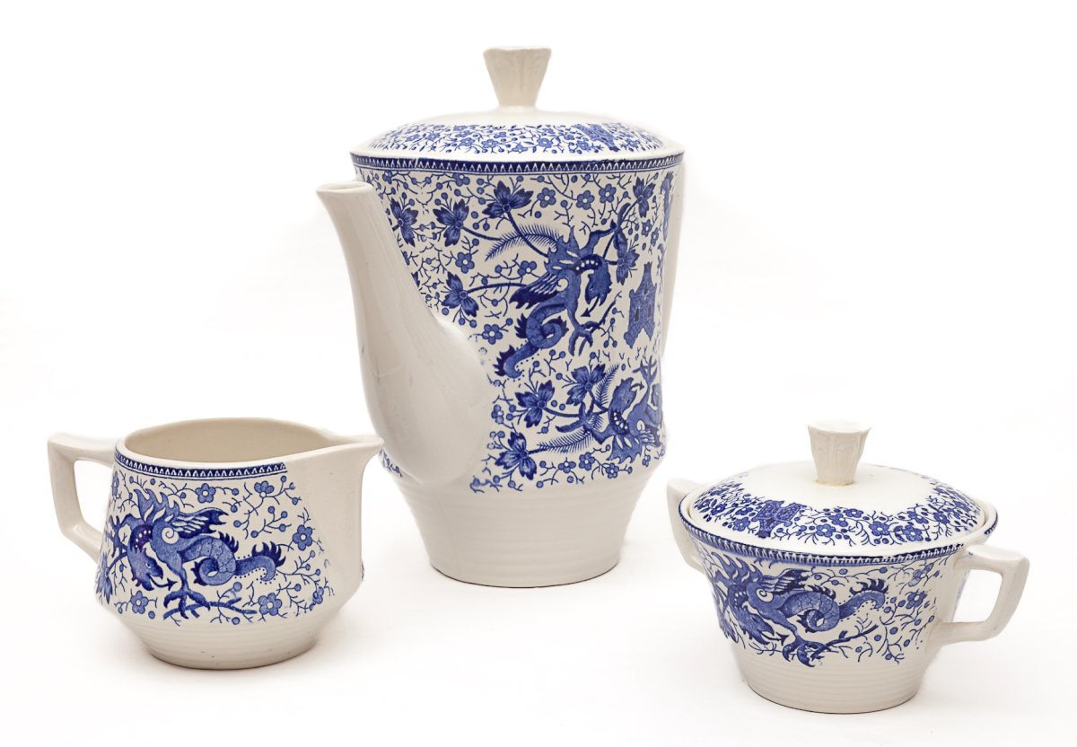 1 coffee pot, 1 milk jug, 1 sugar bowl.