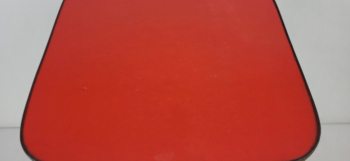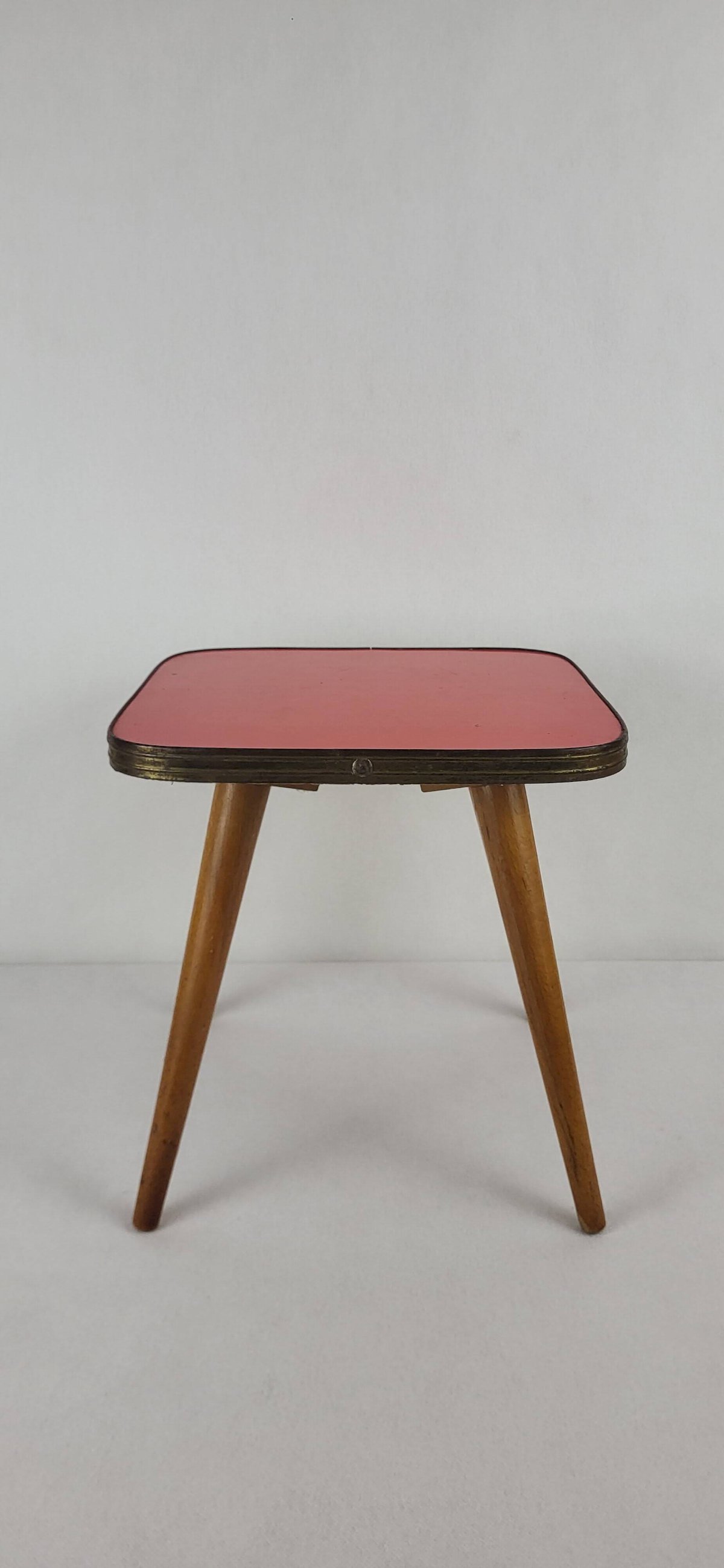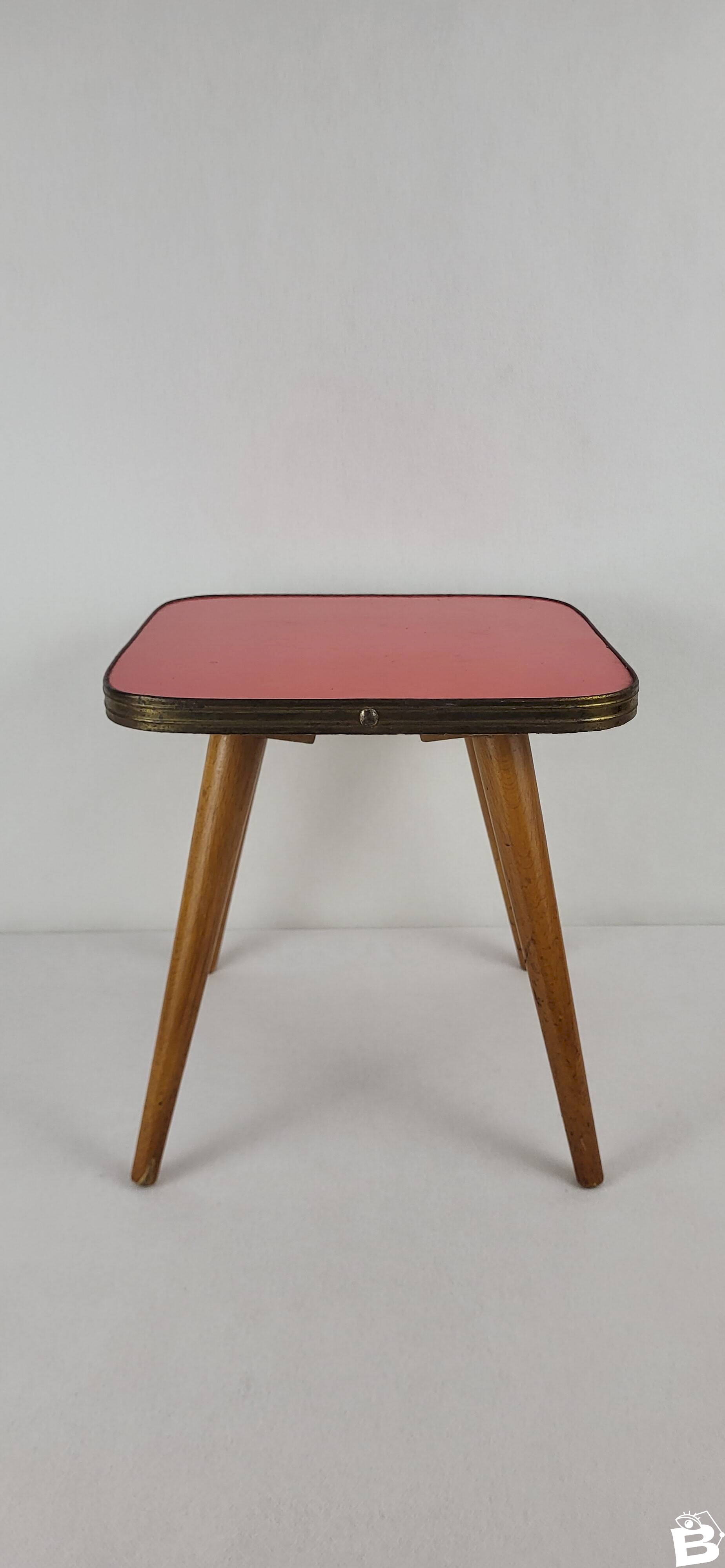 Small coffee table that can be used as an end table or plant stand / 1960s era. Wrapped in patinated golden metal. Height 27.5 cm. Dimensions 27*27 cm. It is in good condition with signs of use and age. Careful packaging and fast delivery. L: 27 W: 27 H: 27