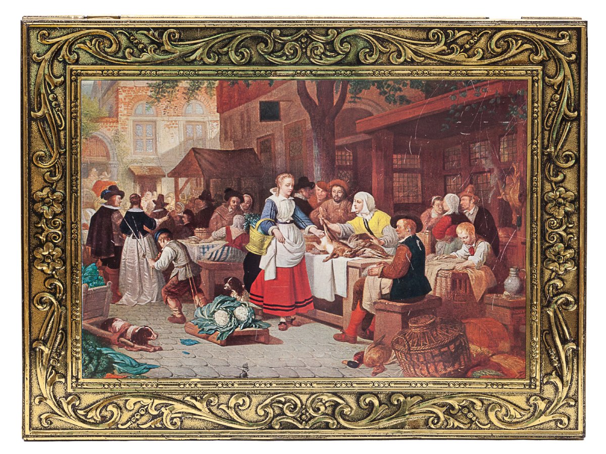 Reproduction of a painting by Adrien De Braekeleer "The Market of Antwerp".