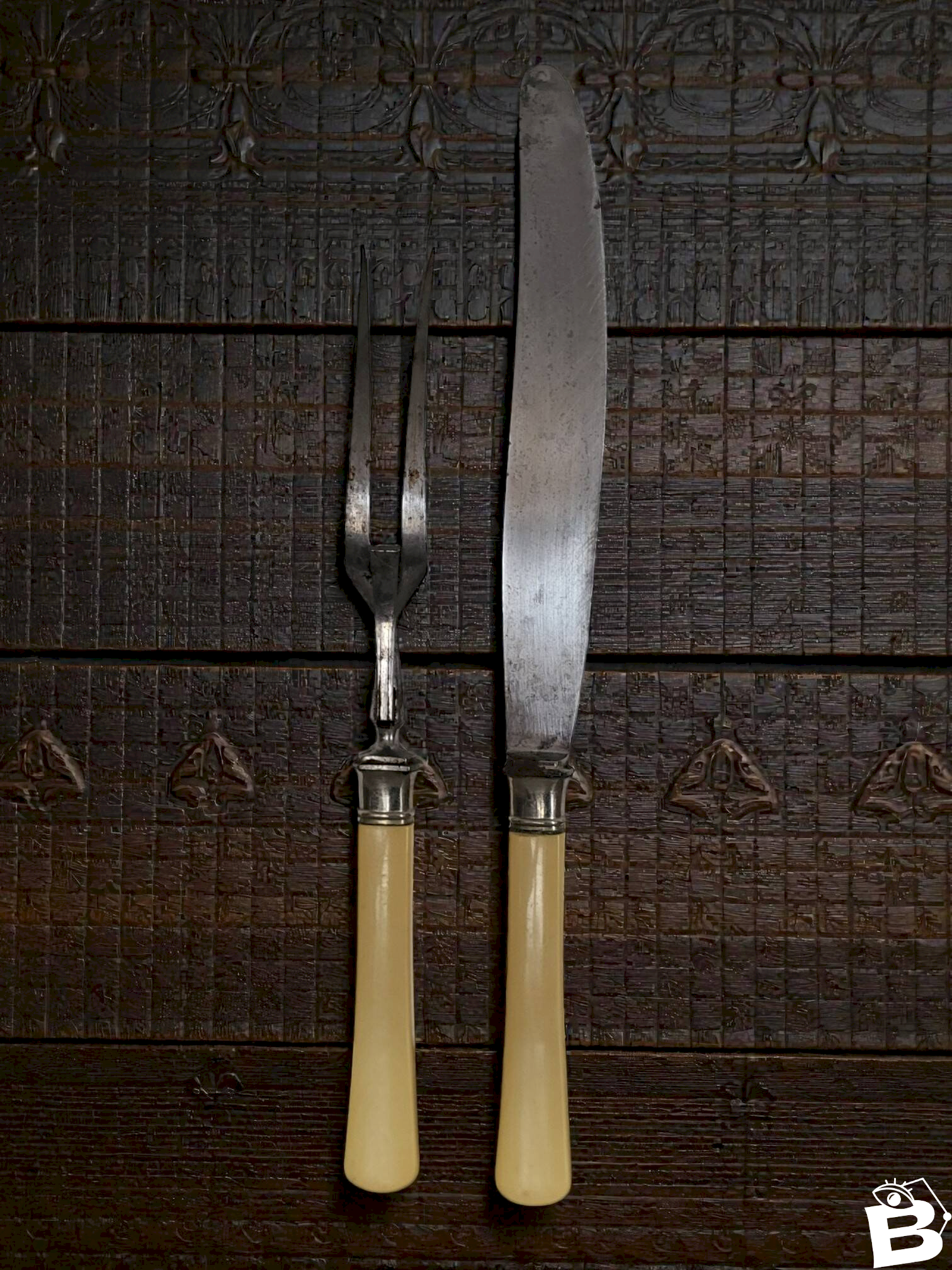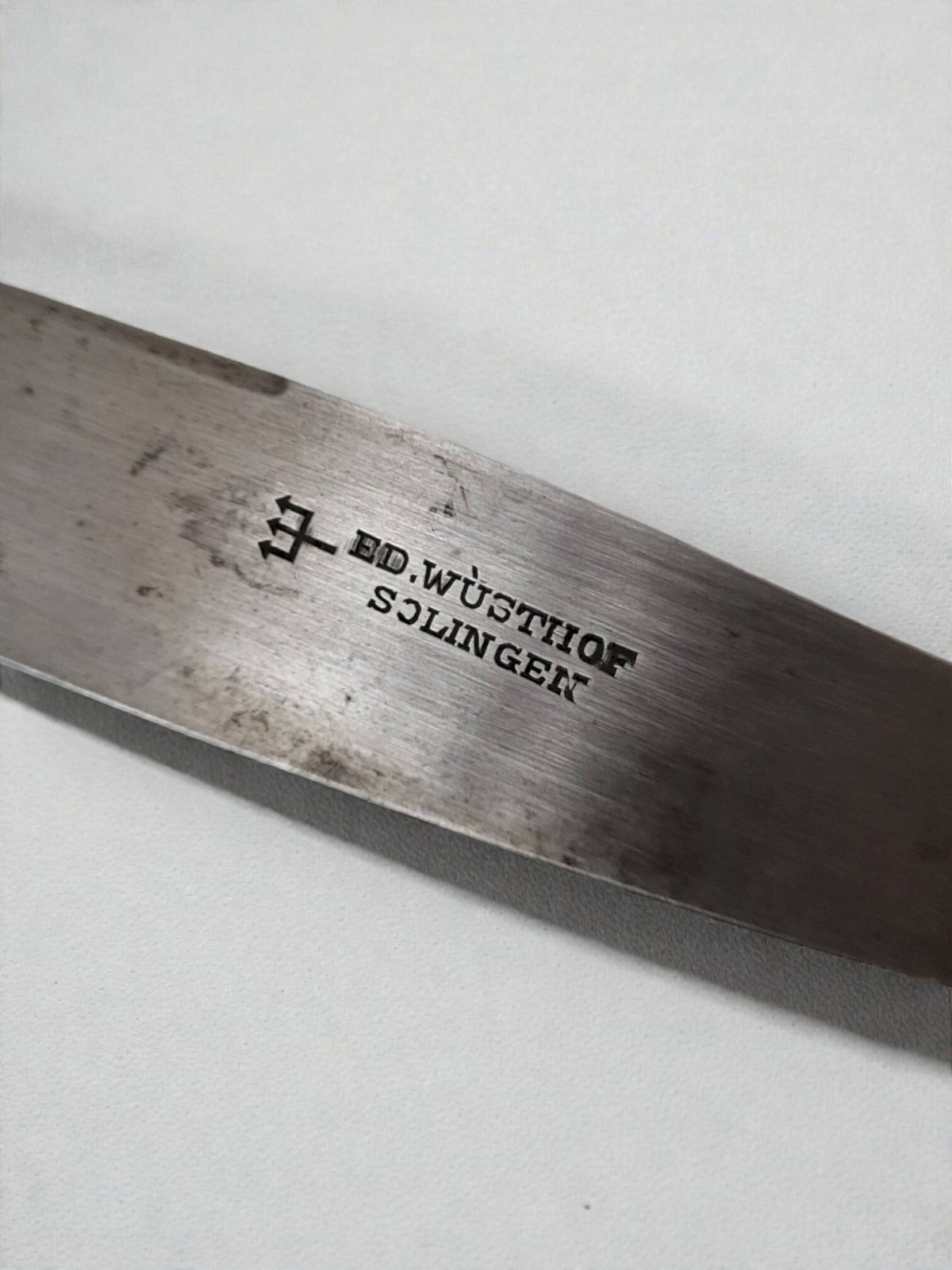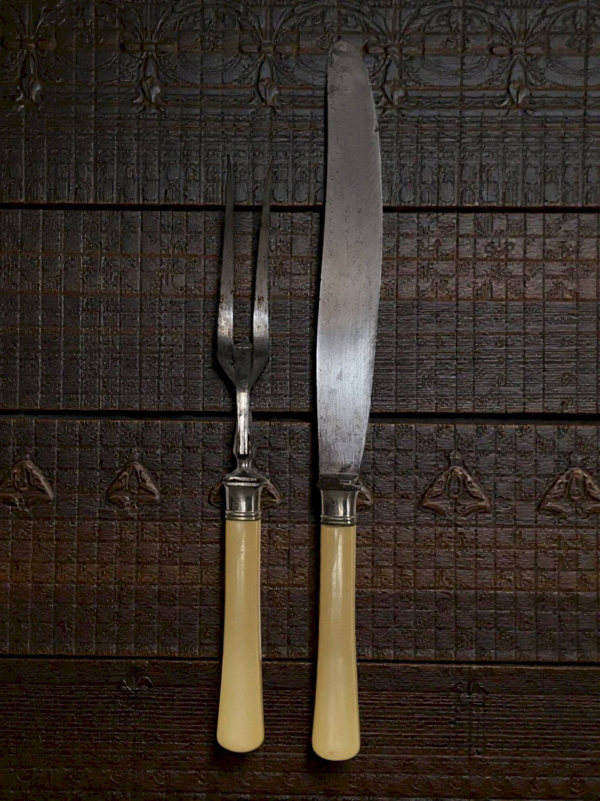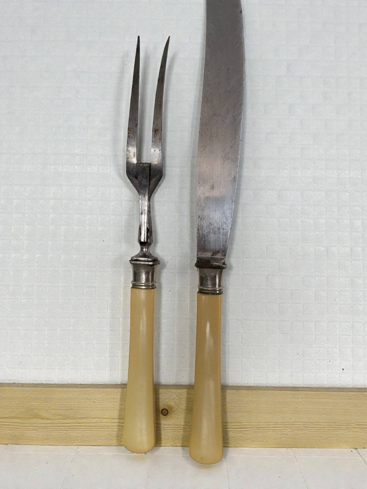 Gigot knives by Solingen, bakelite handle and steel blade. Lengths of 27 and 31 cm. Some signs of oxidation. Neat packaging and fast delivery. L: 1 l: 1 H: 1