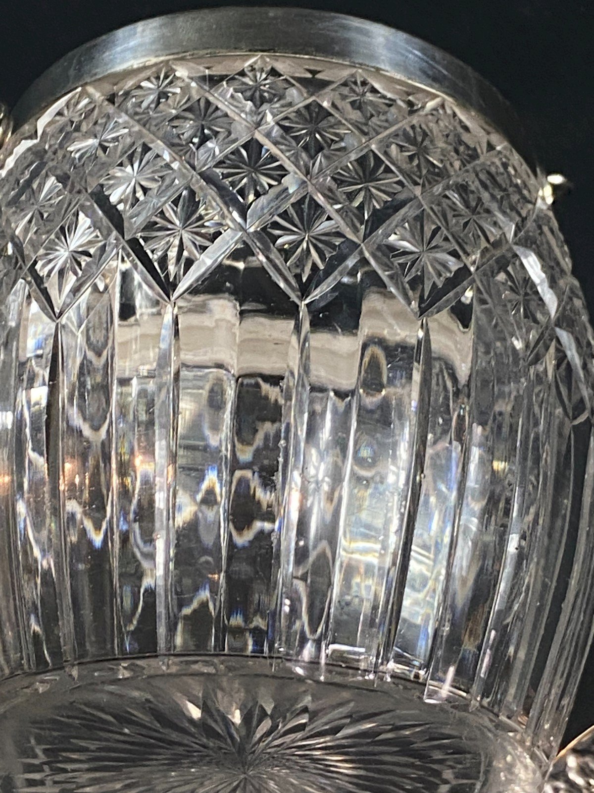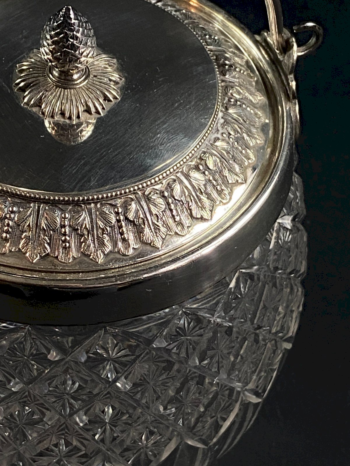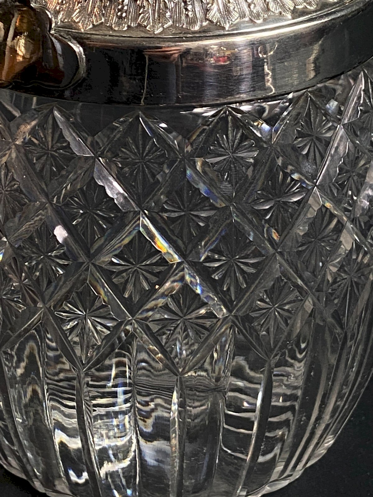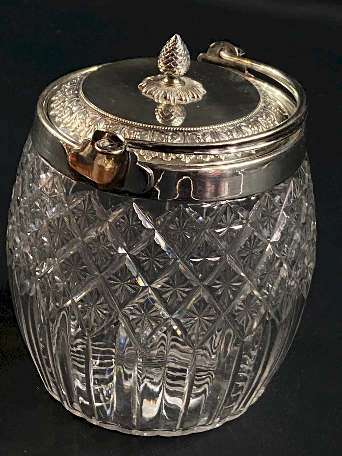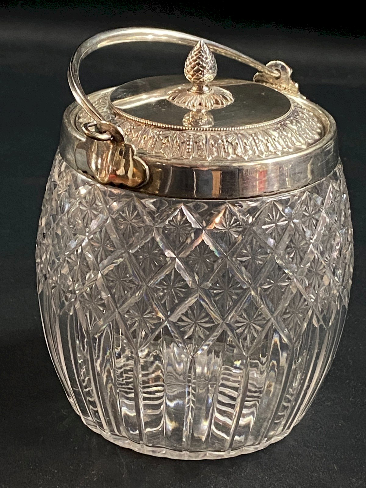 Superb crystal biscuit bucket cut by Baccarat or Saint Louis. Silver metal mount with a decor of heart-shaped friezes in Empire style. Maximum dimensions: Height 16.3 x 13.3 cm. Total weight: 955 grams. Very good condition. Ultra-secure shipping to destinations worldwide - Order pickup possible by appointment, 7 rue Notre-Dame 18000 Bourges. - Possibility of grouping within the same package: please contact me in advance so that I can calculate your optimized shipping costs. Country of origin: France.