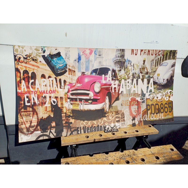 Cuba Havana Wood Decor Panel, Height: 50 cm, Width: 100 cm, Weight: 2 kg, very good condition.