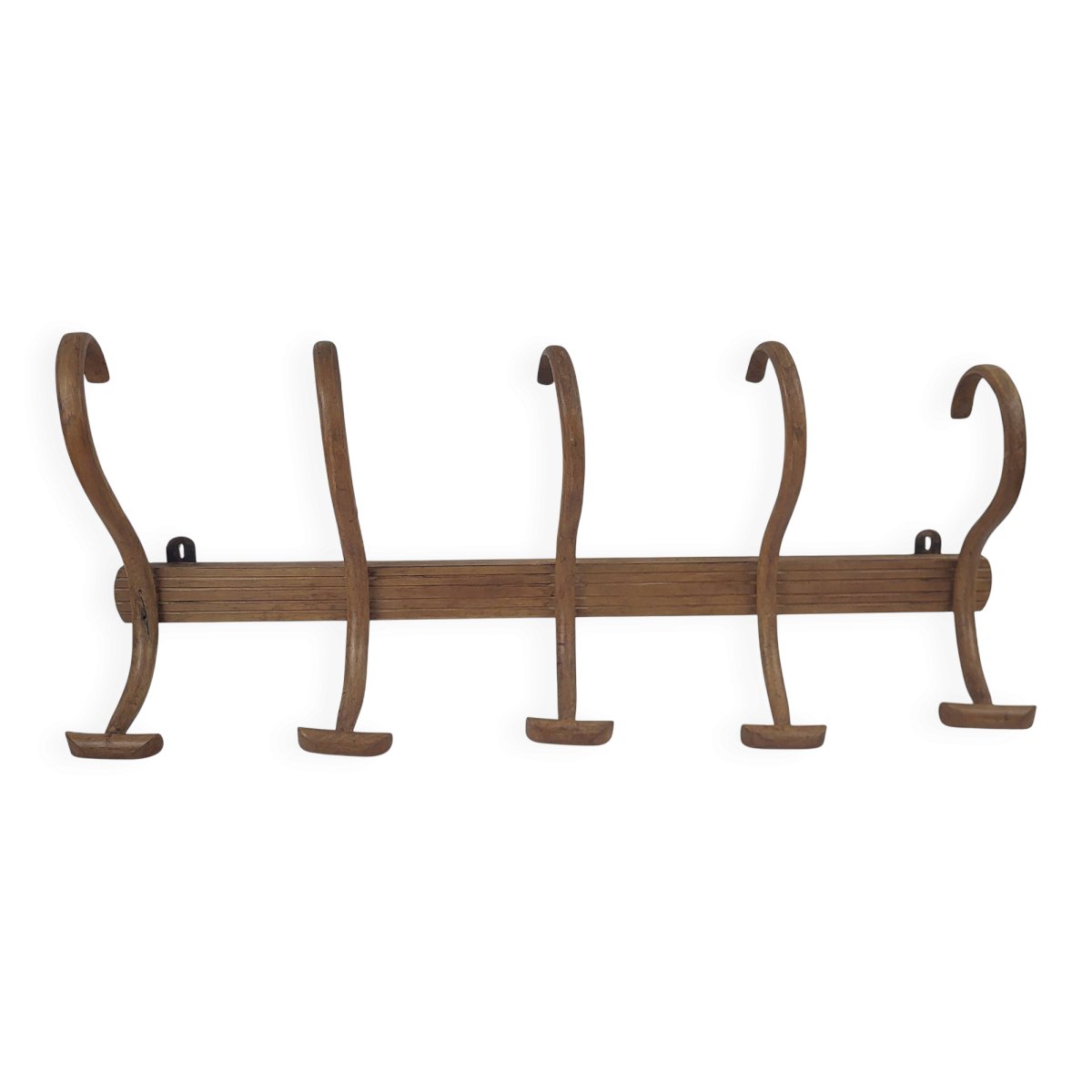 Curved wooden coat rack Japy frères. Length 91.5 cm. Height 38-39 cm. Depth 17 cm. In good condition / Minimal signs of use and age. L: 91 W: 17 H: 38