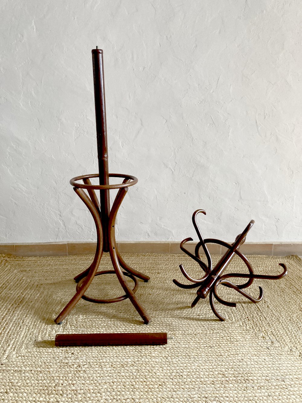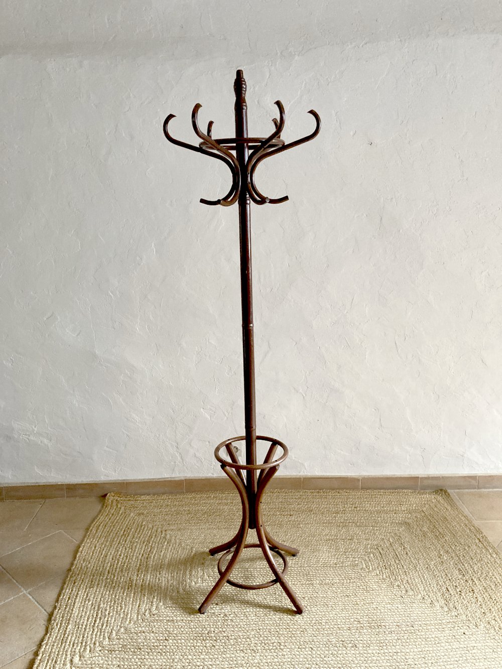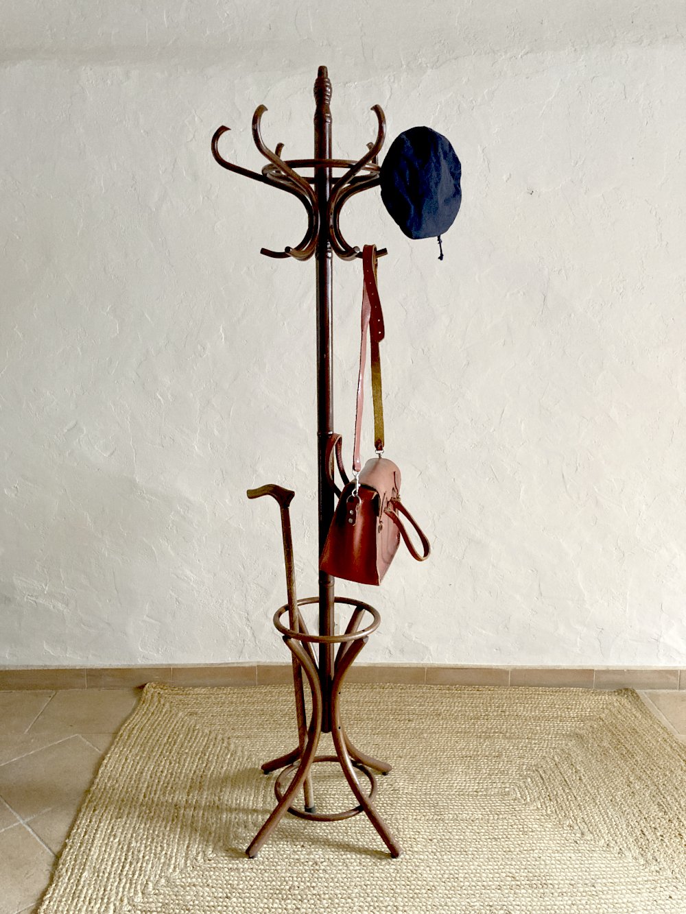 Complete with its umbrella/cane holder encircled by two rings at its base. Six double hooks in very good condition for coats and headgear.