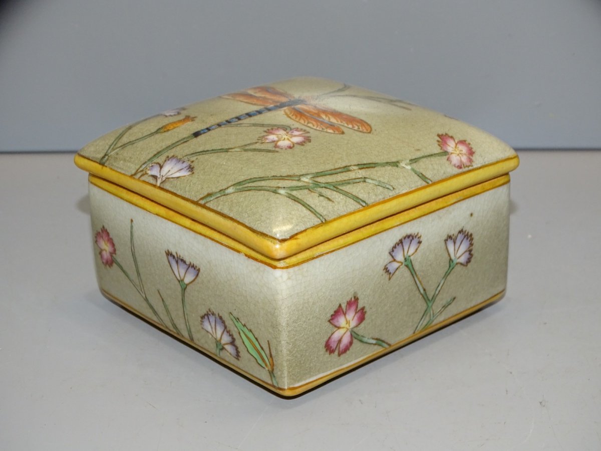Pretty little candy box Jewelry box 20th century in ceramic decorated with a beautiful dragonfly on the lid and lovely little flowers with enamel highlights - (see photos) - In good used condition - Ref: 1V251219/14 - Height 6.8 cm - 10 x 10 cm - Weight 0.459 kg - For any questions: SHIPPING POSSIBLE VIA MONDIAL RELAY or COLISSIMO upon request VERY GOOD PACKAGING GUARANTEED THANK YOU for CAREFULLY LOOKING AT ALL the PHOTOS as THEY ARE AN INTEGRAL PART of the DESCRIPTION and ALLOW YOU TO SEE the ITEM BEST with ITS POSSIBLE SMALL IMPERFECTIONS -