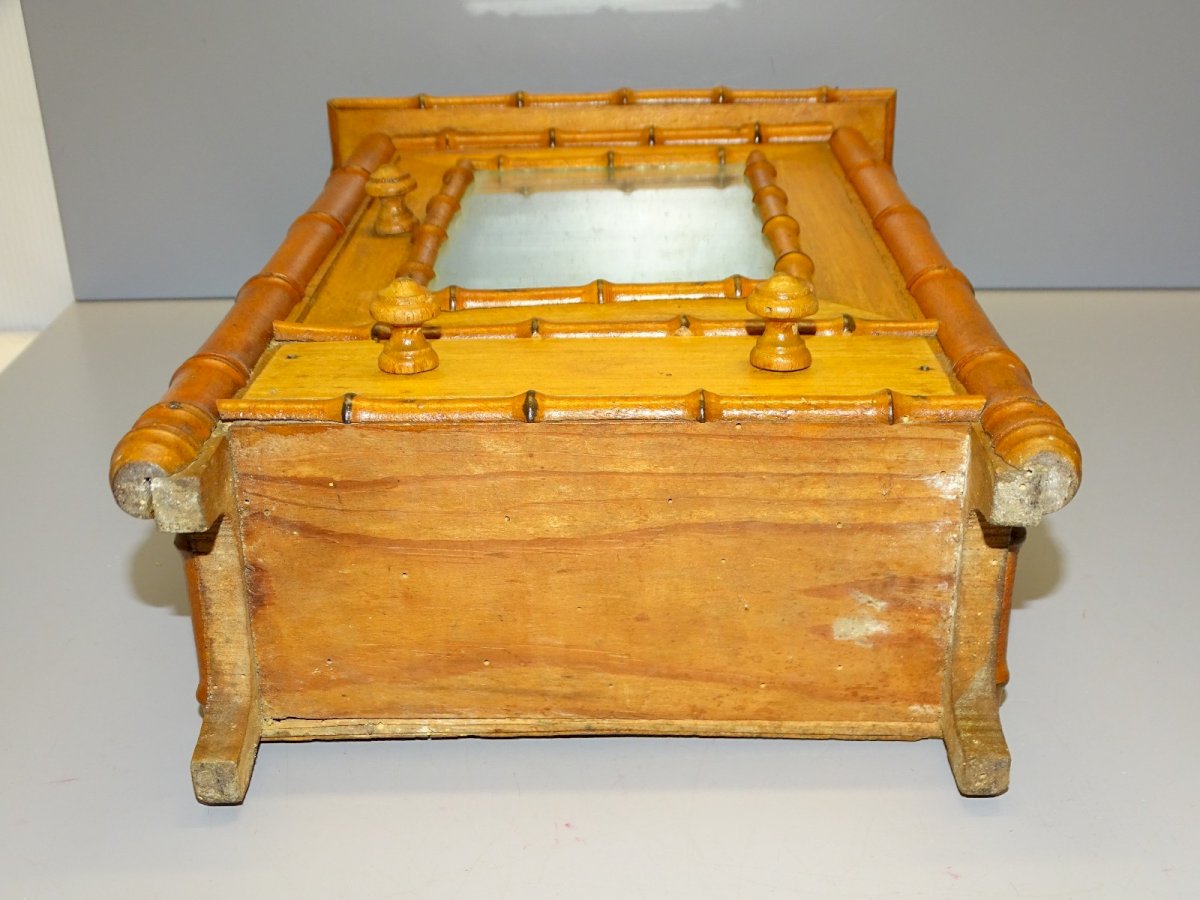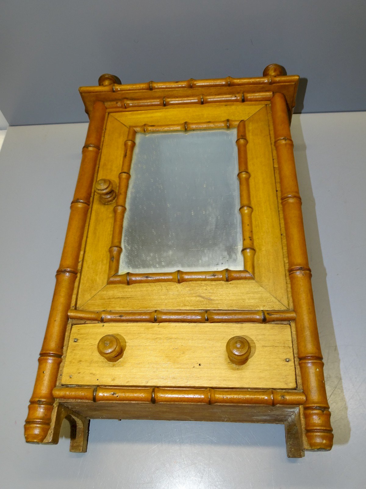 Pretty old small doll cupboard with 1 door, 1 drawer in Bamboo style - note small holes from moths - the mirror's backing is worn (see photos) - in its original found condition, out of an attic - Ref.42050225/83 Maximum height 38.8 cm - Length 23.3 cm - Width 10.6 cm - Weight 1.230 kg To contact me my email address: SHIPPING POSSIBLE VIA MONDIAL RELAY or COLISSIMO upon request VERY GOOD PACKAGING GUARANTEED THANK YOU for LOOKING AT ALL the PHOTOS as THEY ARE AN INTEGRAL PART of the DESCRIPTION and ALLOW YOU to SEE the ITEM at its BEST - Condition: Second-hand: Item has been used. Please check the seller's description for more details... Second-hand: Item has been used. any imperfections. Vehicle/engine: DOLL FURNITURE Type: Dolls Pretend Play: DOLL CUPBOARD Miniature Toy: DOLL CUPBOARD