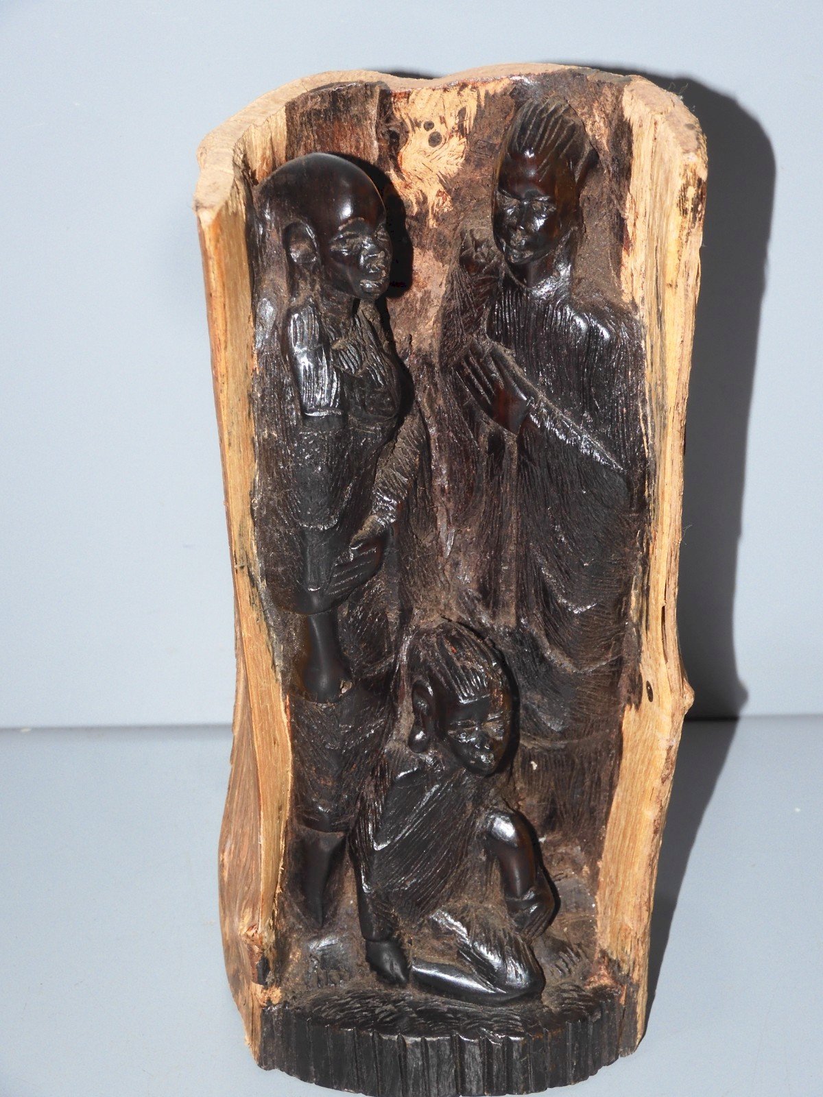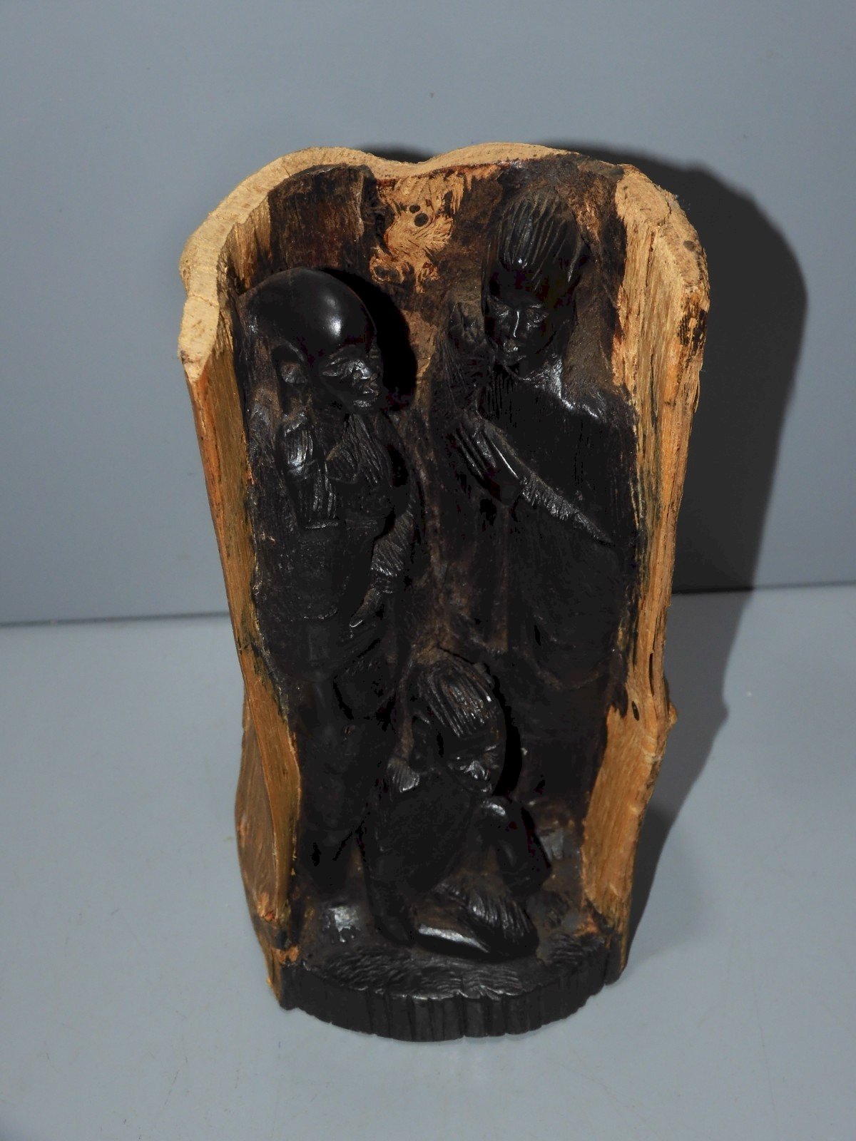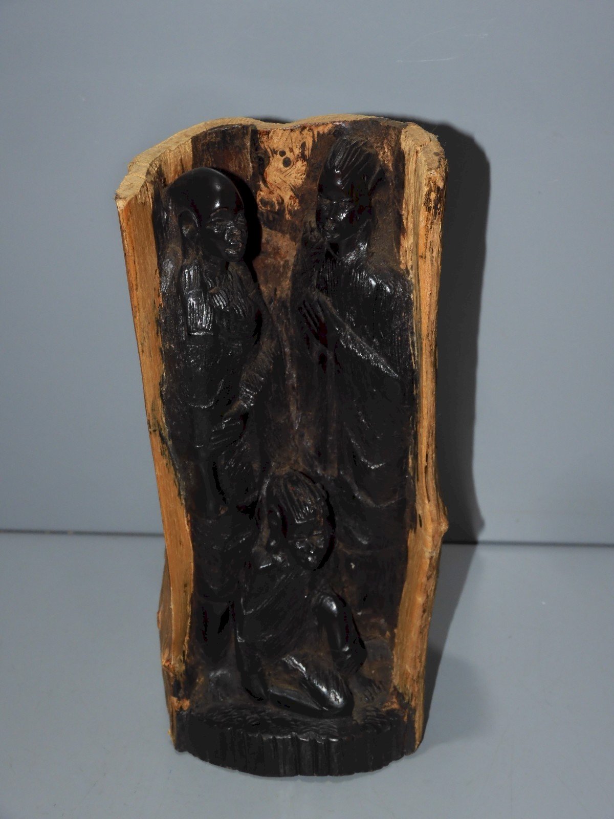 Beautiful old dark wood branch with 3 carved Asian figures (photos) in good used condition, with finds patina, taken from an attic, needs to be dusted off - Ref. 1V250703/17 Height 20.2 cm Length 9 cm Width +/- 6 cm - Base 8.9 x 6.8 cm - Weight 0.648 kg For contact, my email address: SHIPPING POSSIBLE VIA MONDIAL RELAY or COLISSIMO upon request VERY GOOD PACKAGING GUARANTEED PLEASE take a GOOD LOOK at ALL the PHOTOS as THEY ARE AN INTEGRAL PART of the DESCRIPTION and ALLOW you to SEE the ITEM AT ITS BEST with ITS POSSIBLE SMALL DEFECTS - Origin: China Material: Wood