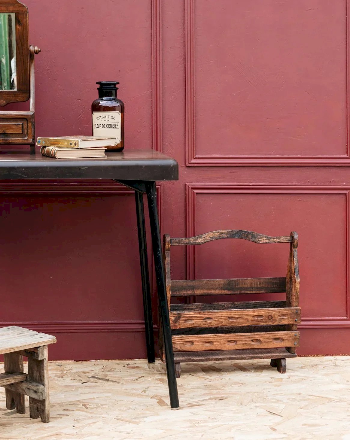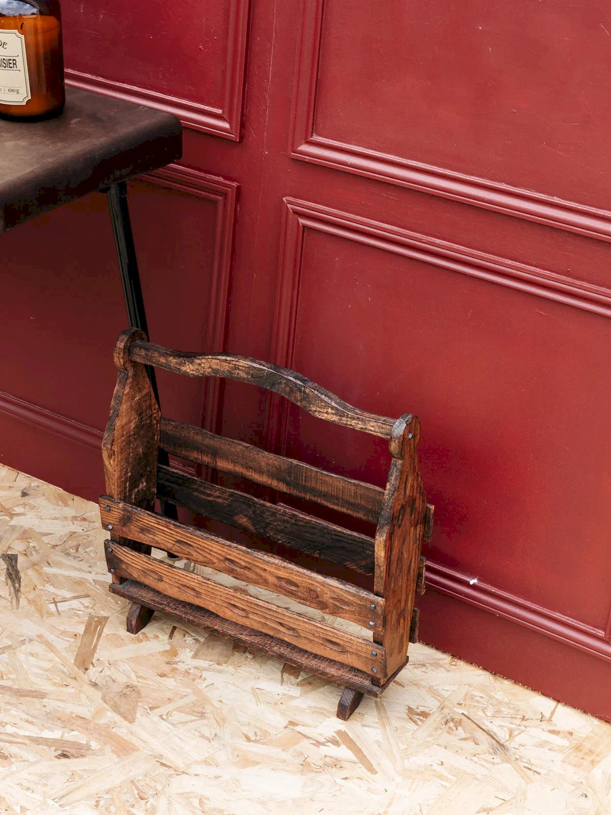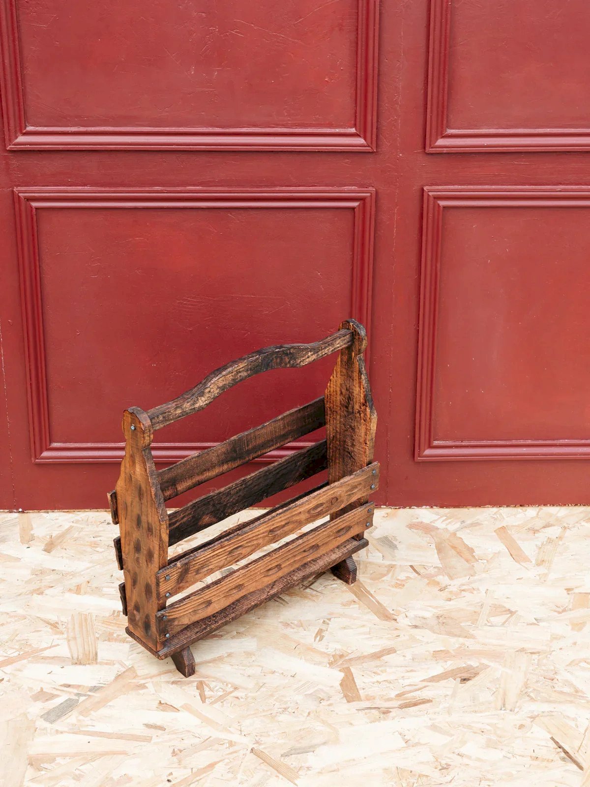 Discover this raw wood magazine rack, combining elegance and brutalist style. Its distinctly contemporary design highlights natural materials, featuring clean lines and an authentic finish that seamlessly fits into any interior. Practical and aesthetic, this storage accessory will enhance your space while keeping your magazines and books within reach. Add a touch of originality to your decor with this one-of-a-kind magazine rack. Length: 45 cm Width: 14 cm Height: 47 cm A Brief History of the Magazine Rack The term "magazine rack" emerged in the early 20th century when newspapers and magazines became common in households. This piece of furniture, often made of wood or metal, is designed to organize and display printed publications. Initially found in living rooms and waiting areas, it embodies order and access to culture. Today, the magazine rack adapts to all interior styles, offering a stylish yet practical decorative touch. Condition: Used: Item has been used. Item shows some superficial wear marks, ...Used: Item has been used. Item shows some superficial wear marks, fully operational and functioning correctly. It may be a demonstration model or an item returned to the store after a short period of use. Possible imperfections. Brand: Debongout Type: Vintage product Material: Wood Style: Country
