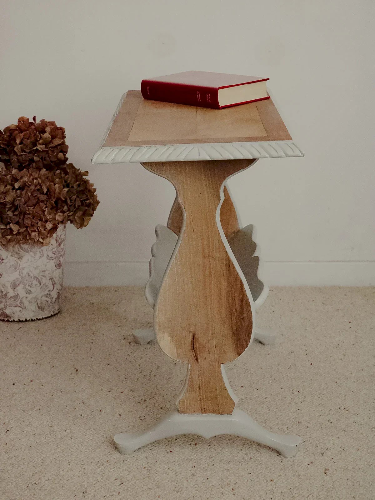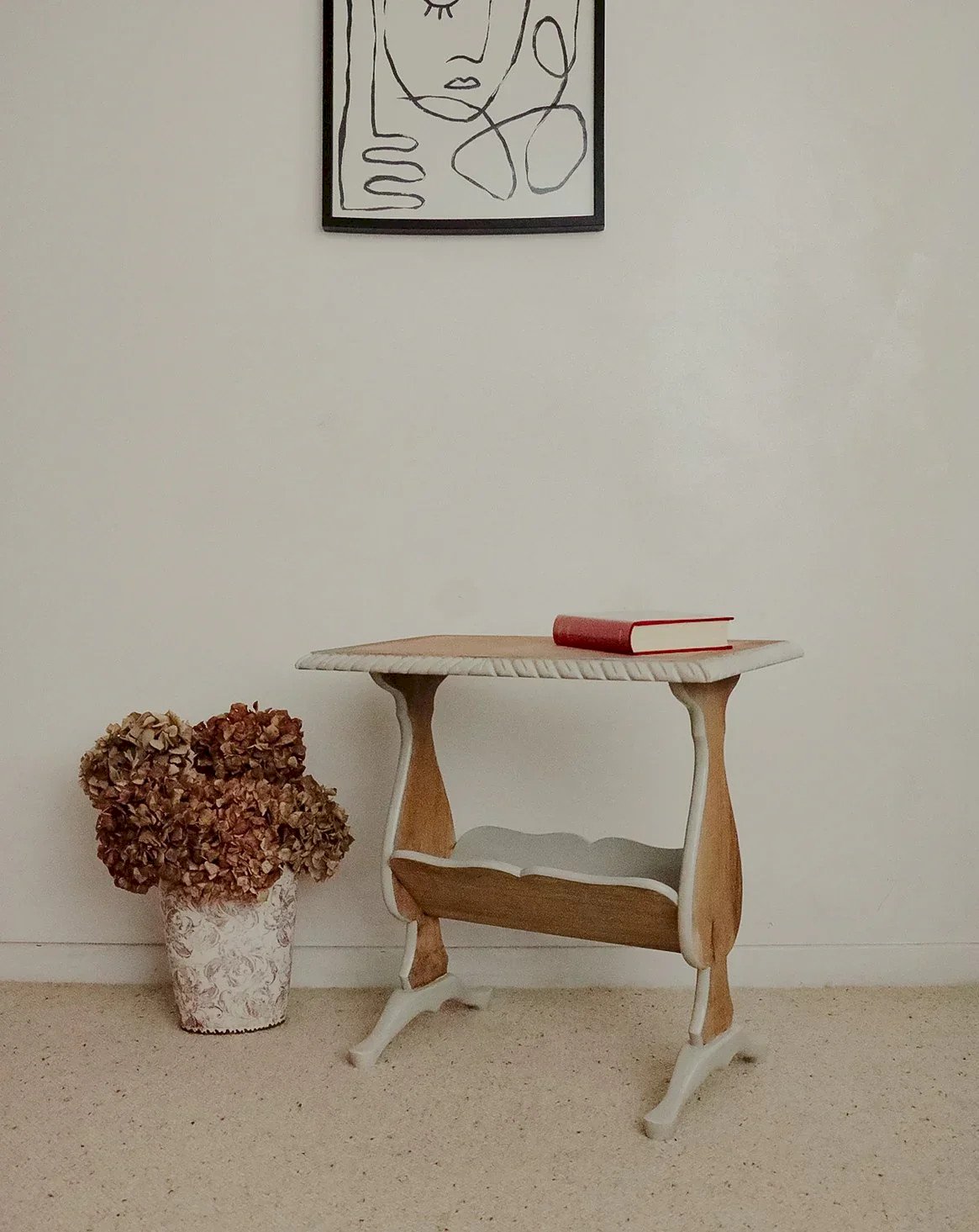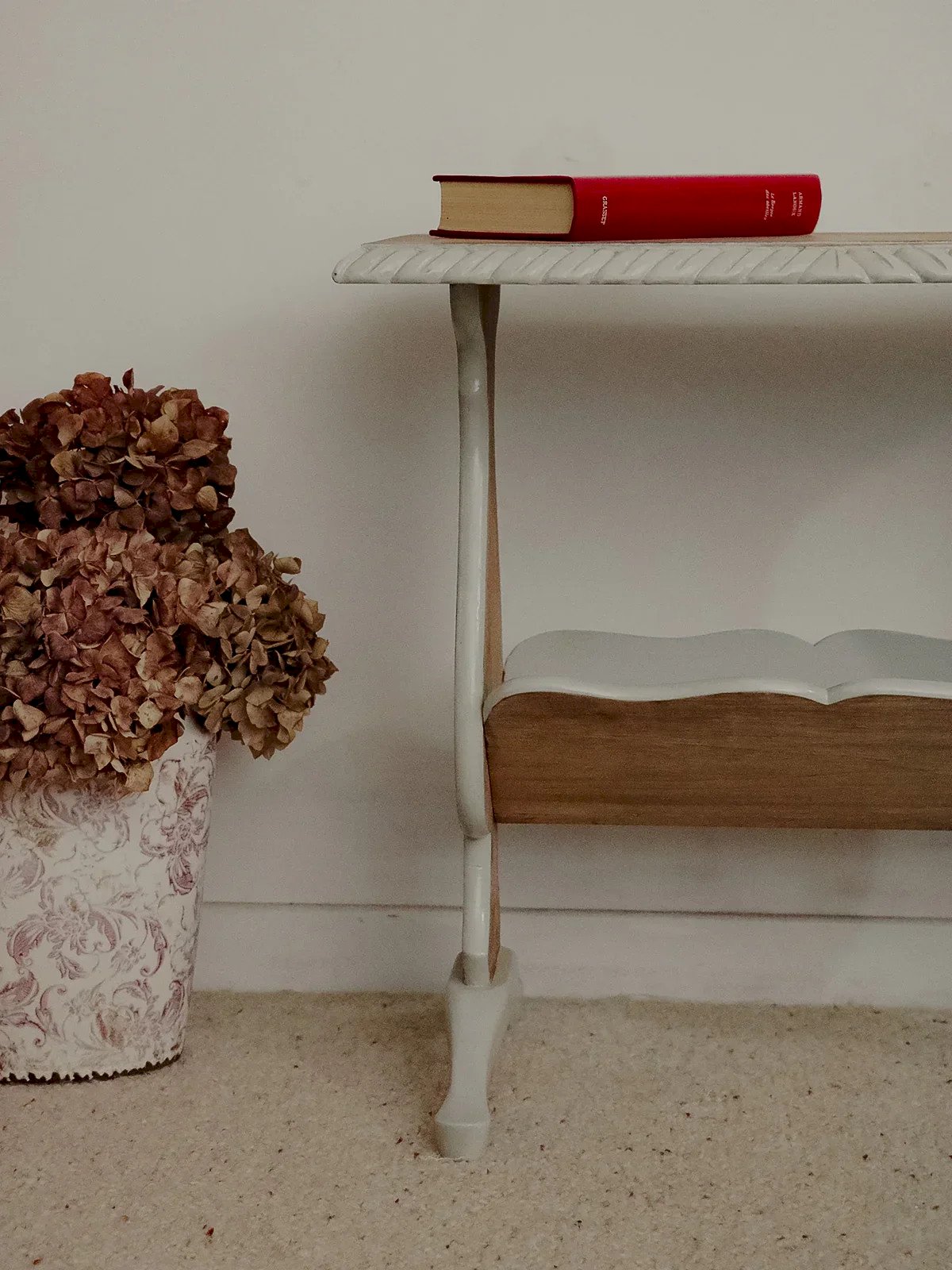 Adopt this oak and poplar magazine rack, painted in a soft gray that reveals the grain of the light wood. Its compact silhouette and well-studied proportions accommodate a beautiful selection of magazines without cluttering the space, making it ideal next to an armchair, in an entrance hall, or a bedroom. The pairing of wood types ensures durability and visual lightness, adding a warm and contemporary note to your interior. Length: 57 cm Width: 31 cm Height: 56 cm A brief history of the magazine rack The term "magazine rack" appeared in the early 20th century, when newspapers and magazines became common in households. This piece of furniture, often made of wood or metal, is designed to organize and display printed publications. Initially found in living rooms and waiting areas, it embodies order and access to culture. Today, the magazine rack adapts to all interior styles, offering a practical decorative touch. Condition: Used: An item that has been used. Item with some signs of superficial wear, ...Used: An item that has been used. Item with some signs of superficial wear, fully operational and functioning properly. It may be a demonstration model or an item returned to the store after a short period of use. potential imperfections. Brand: Debongout Type: Thrifted product Material: Oak, Poplar Style: Country