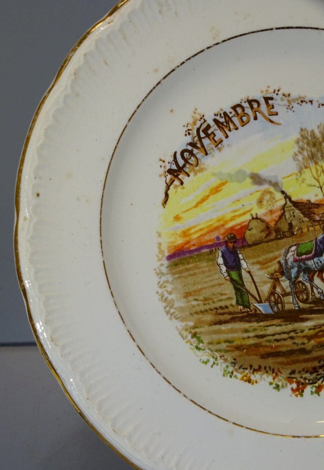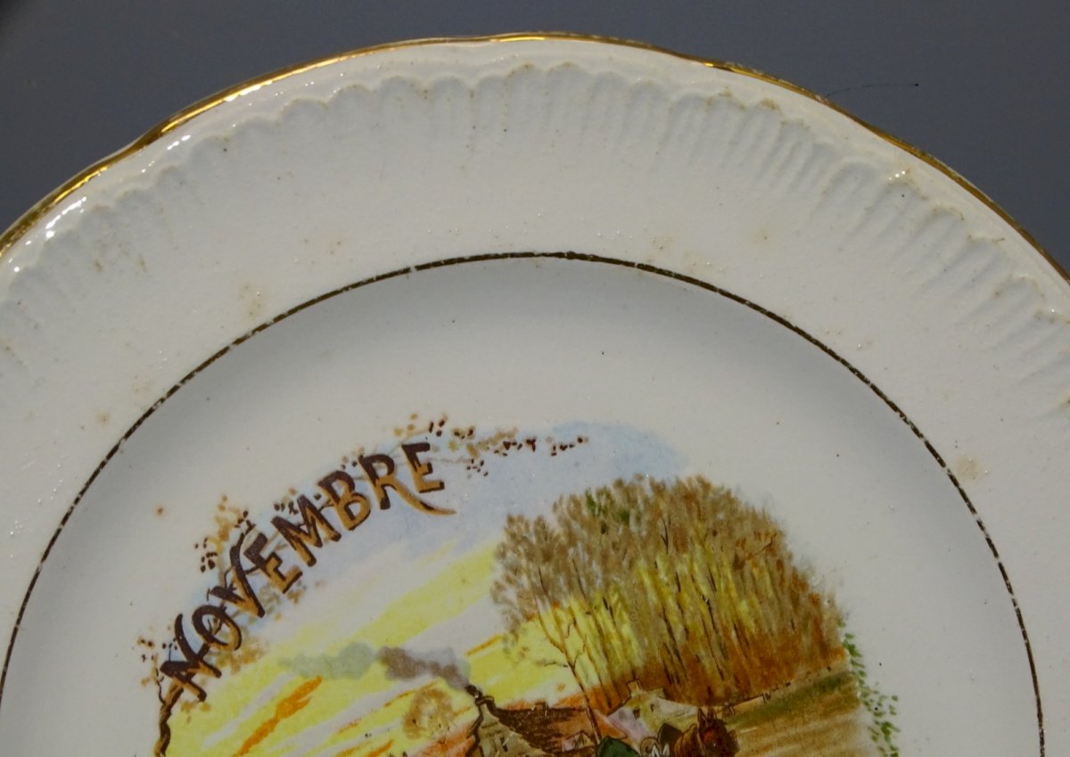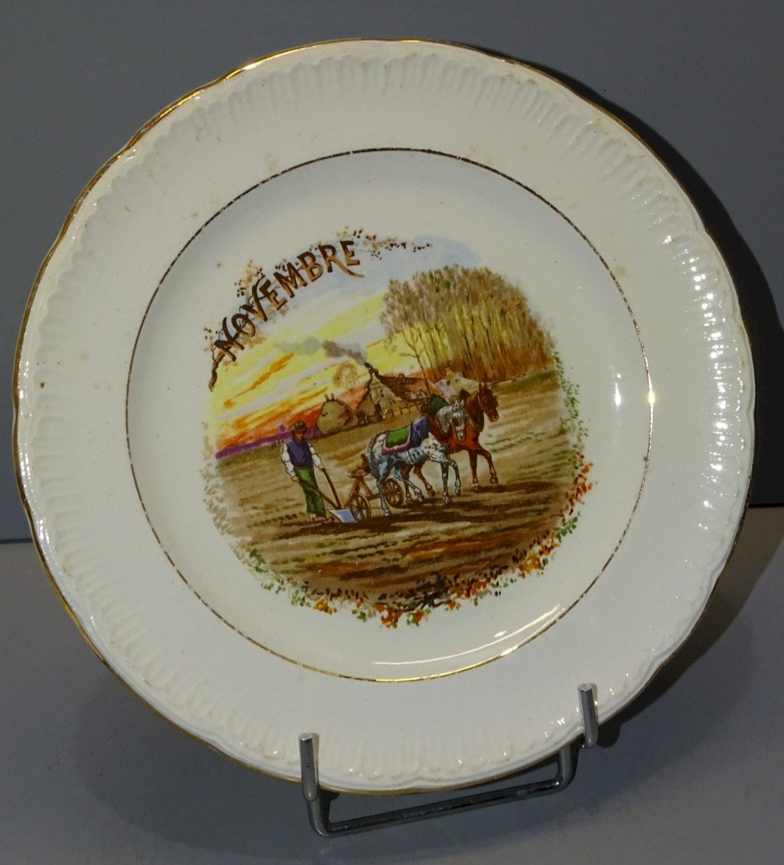 Beautiful Saint Amandine ceramic dessert plate (unmarked) for the month of NOVEMBER - Wear on the gilding at the edge of the wing - small signs of use - with burnishing on the back and a few on the front - (photos) - all clearly visible in the photos (see photos) - in used condition - Ref.: 1V240718/329 BIS - Other months from May to December are available - Diameter 19.5 cm - Weight 0.243 kg - SHIPPING POSSIBLE VIA MONDIAL RELAY or COLISSIMO upon request. VERY GOOD PACKAGING GUARANTEED. THANK YOU for CAREFULLY LOOKING AT ALL the PHOTOS as THEY ARE AN INTEGRAL PART of the DESCRIPTION and ALLOW YOU TO SEE the ITEM AT ITS BEST with ITS SMALL POSSIBLE DEFECTS.