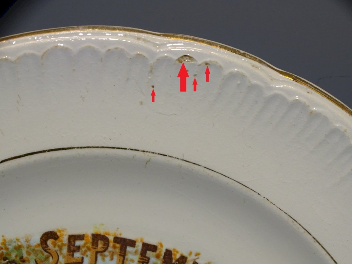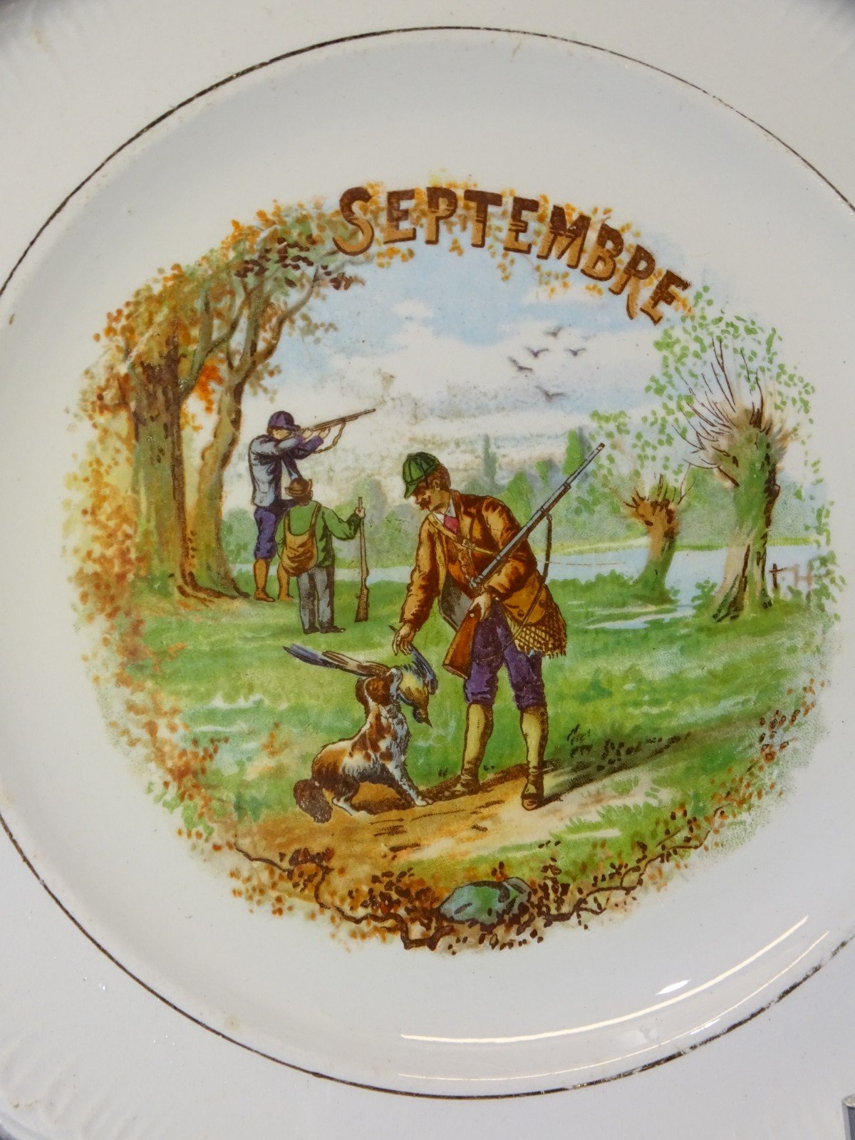 Beautiful Saint Amandinoise ceramic dessert plate (unmarked) for the month of SEPTEMBER - Wear of the gilding on the edge of the wing - small traces of use - 1 small superficial chip on the wing that does not go through and small defects on the upper edge of the wing (photos) - all clearly visible in the photos (see photos) - in used condition - Ref.: 1V240718/327 BIS - Other months from May to December are available - Diameter 19.7 cm - Weight 0.220 kg - SHIPPING POSSIBLE VIA MONDIAL RELAY or COLISSIMO upon request - VERY GOOD PACKAGING GUARANTEED - PLEASE TAKE A GOOD LOOK AT ALL THE PHOTOS as THEY ARE AN INTEGRAL PART OF THE DESCRIPTION and ALLOW YOU TO SEE THE ITEM IN THE BEST LIGHT with ITS POSSIBLE SMALL DEFECTS -