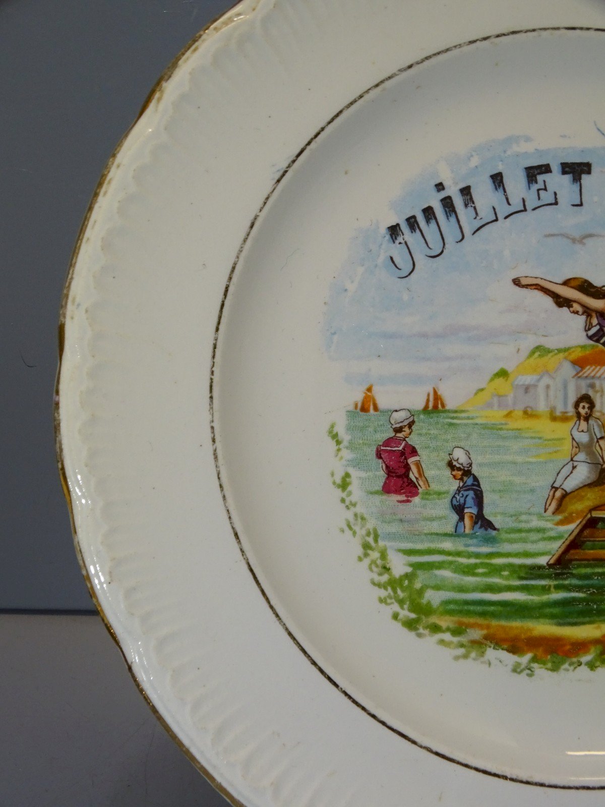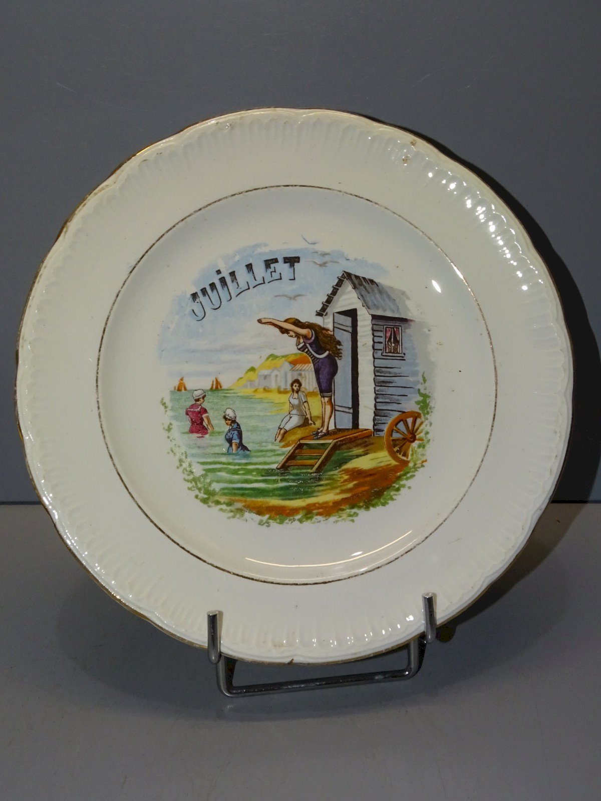 Beautiful Saint Amandine ceramic dessert plate (unmarked) month of JULY - Wear on the edge of the wing - small signs of use - all clearly visible in the photos (see photos) - in used condition - Ref.: 1V240718/325 BIS - The other months from May to December are available. Diameter 19.8 cm - Weight 0.237 kg. SHIPPING POSSIBLE VIA MONDIAL RELAY or COLISSIMO upon request, VERY GOOD PACKAGING GUARANTEED. PLEASE TAKE A GOOD LOOK AT ALL the PHOTOS as THEY ARE AN INTEGRAL PART of the DESCRIPTION and ALLOW YOU TO SEE the ITEM AS CLEARLY AS POSSIBLE with its POTENTIAL SMALL DEFECTS.