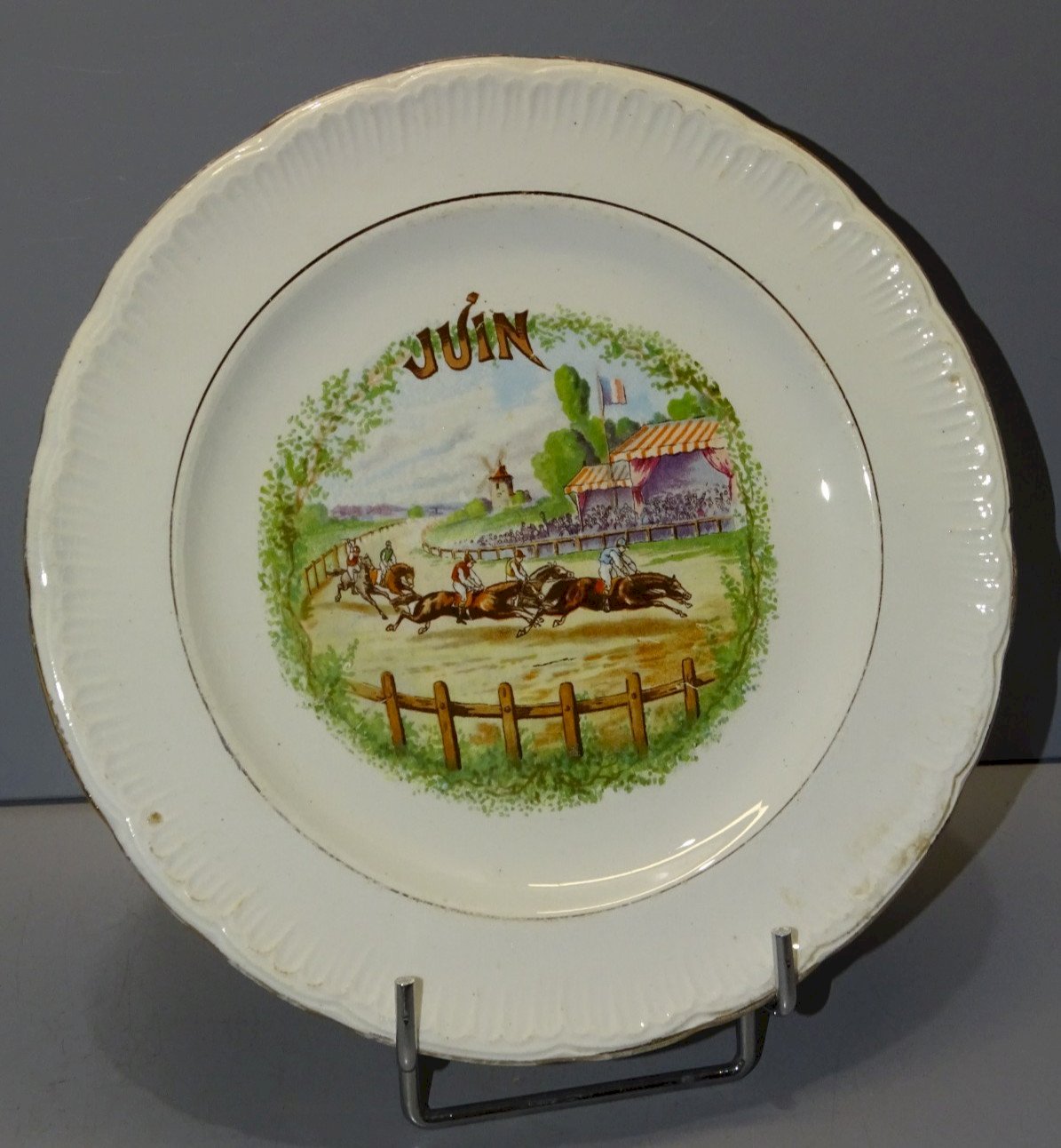 Beautiful ceramic dessert plate from Saint-Amand (unmarked) month of JUNE - Wear on the gilding on the edge of the wing - small signs of use - all clearly visible in photos (see photos) - in used condition - Ref.: 1V240718/324 BIS - The other months from May to December are available. Diameter 19.6 cm - Weight 0.236 kg. SHIPPING POSSIBLE VIA MONDIAL RELAY or COLISSIMO upon request VERY GOOD PACKAGING GUARANTEED. PLEASE CAREFULLY LOOK AT ALL THE PHOTOS as THEY ARE AN INTEGRAL PART of the DESCRIPTION and ALLOW YOU TO SEE the ITEM at its BEST with ITS POTENTIAL SMALL DEFECTS.