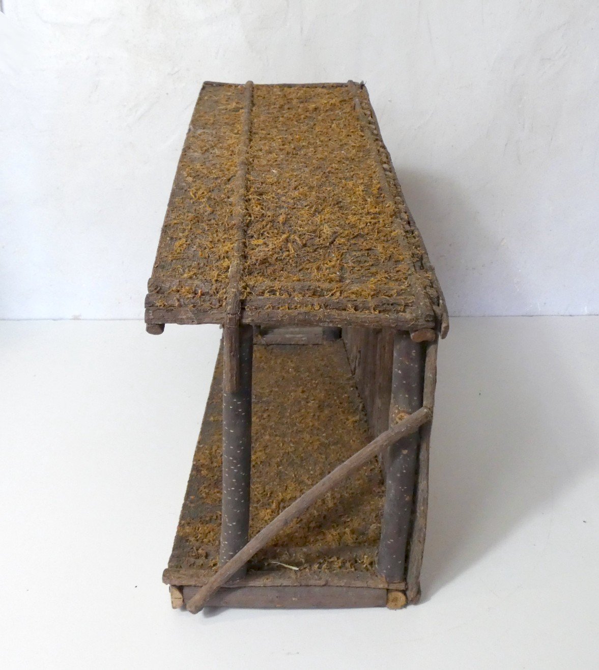 Old wooden stable for creating a nativity scene. Large size. Height: 38 cm. Width: 65 cm. Depth: 20 cm. In very good condition. Condition: Used. Item has been used. Item shows some superficial signs of wear, fully operational and functioning correctly. It may be a display model or an item returned to the store after a short period of use. Possible imperfections. Brand: Devineau Type: Decoration Occasion: Christmas Theme: Christmas