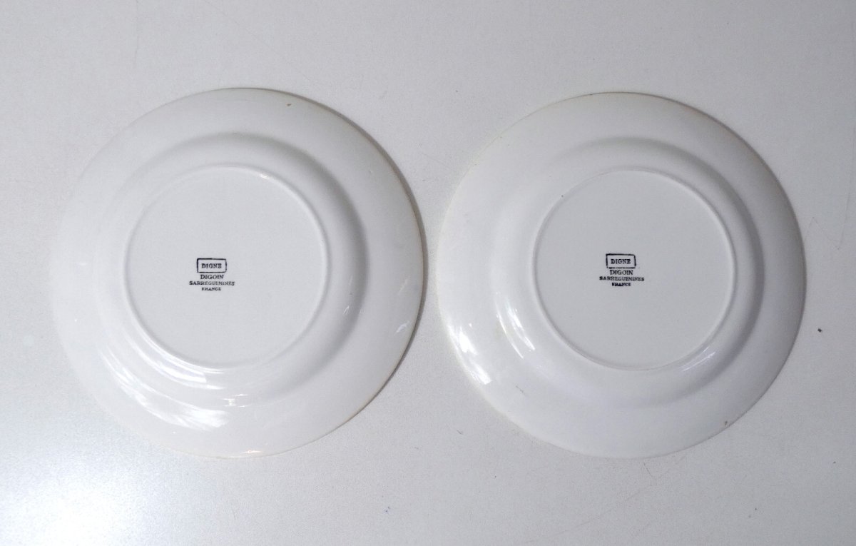Digoin Sarreguemines. Model DIGNE. 2 flat plates. Diameter: 22.5 cm. In very good condition.