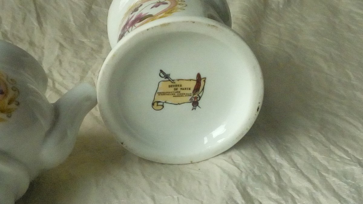 CHARMING LITTLE TEAPOT MADE OF PORCELAIN FROM PARIS DOLL'S TEA SET HEIGHT 14.50 cm WIDTH 9 cm FROM THE SPOUT TO THE HANDLE IN GOOD CONDITION MISSING THE BURNER Condition: Used Item that has been used. Any possible imperfections. Brand: PORCELAINE DE PARIS Type: TEAPOT Country of origin: France Age range: 5-7 years Manufacturer part number: 0 Scale: 1/12 Age recommended: 8 Features: Contemporary