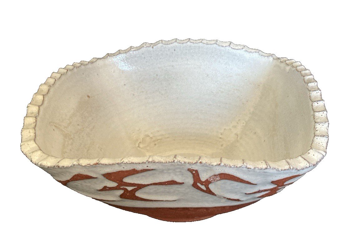 Unglazed and glazed terracotta salad bowl with a decoration of flying birds, marked BREE CERAMIEK DECOR SANTIAGO? (see photos) dimensions: diameter 19 cm, height 8 cm, weight 900 g. Please note some small manufacturing defects in the decoration that are not serious. Look at the photos above, which will also serve as a description. Careful and secure packaging with the option to select postal shipping during your purchase for calculating shipping costs (otherwise, standard Mondial Relay shipping). Thank you all and happy hunting in my shop. Returns accepted within 14 days of receipt, must be returned in original packaging, in its initial condition. No refunds for items returned broken or lost by the carrier, returns at the buyer's expense. Don’t hesitate to add my shop to your favorites! Authenticity: Original Type: Display object, Decorative Origin: Belgium Subtype: Vase Country of origin: Belgium Material: Terracotta