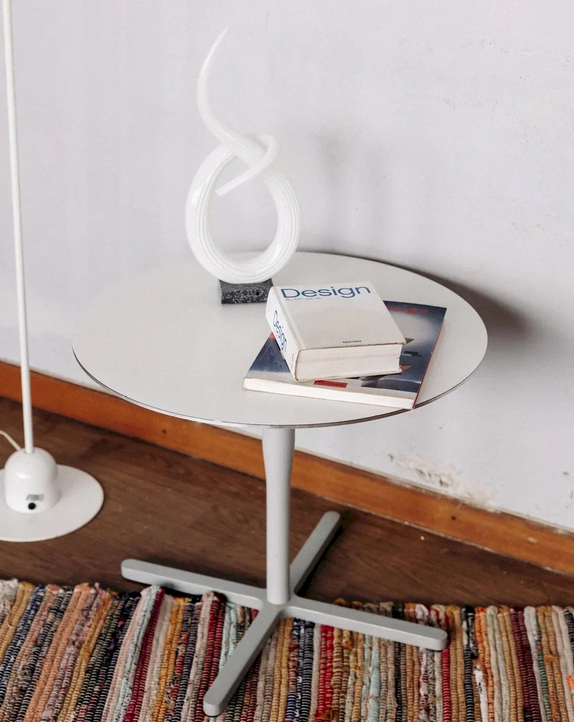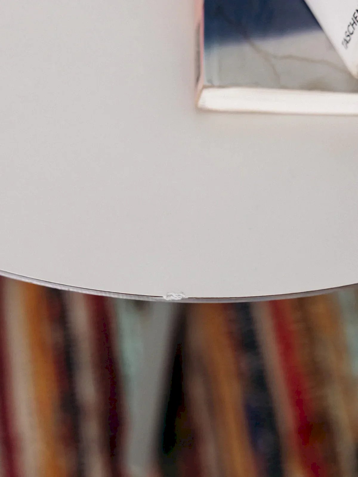 This small round coffee table in aluminum combines modernity and lightness. Its clean design and metal material bring a contemporary and industrial touch to your interior. Perfect for adding an elegant and functional note, it easily integrates into all styles of decoration while being a practical and durable element. 2 pieces are available. Height: 50 cm Diameter: 60 cm Condition: Used: Item has been used. Item shows some superficial signs of wear,... Used: Item has been used. Item shows some superficial signs of wear, fully operational and functioning correctly. It may be a demonstration model or an item returned to the store after a short period of use. any imperfections. Brand: Debongout Type: Vintage product Material: Metal, Wood, Aluminum Style: Contemporary Custom: Coffee tables