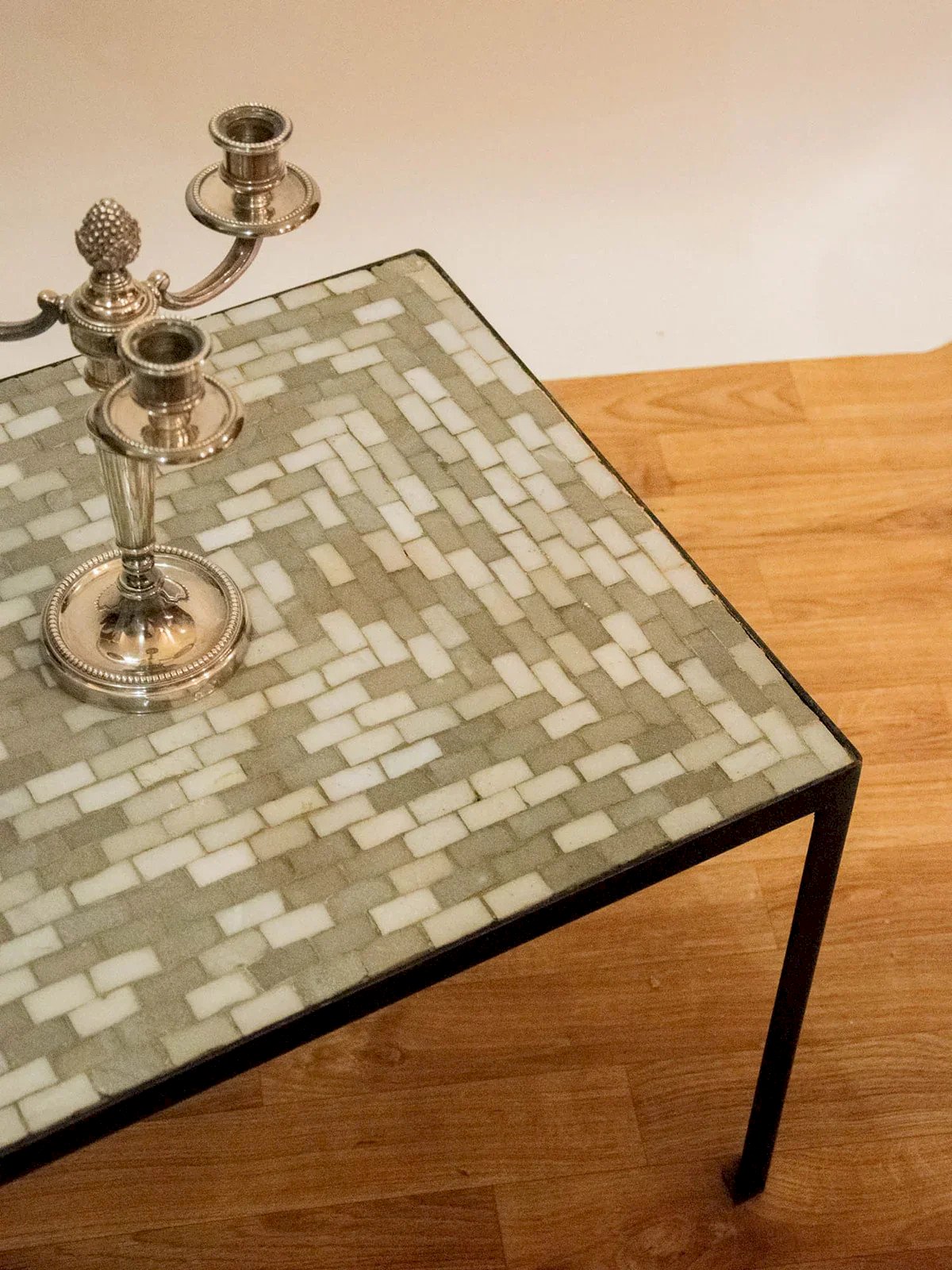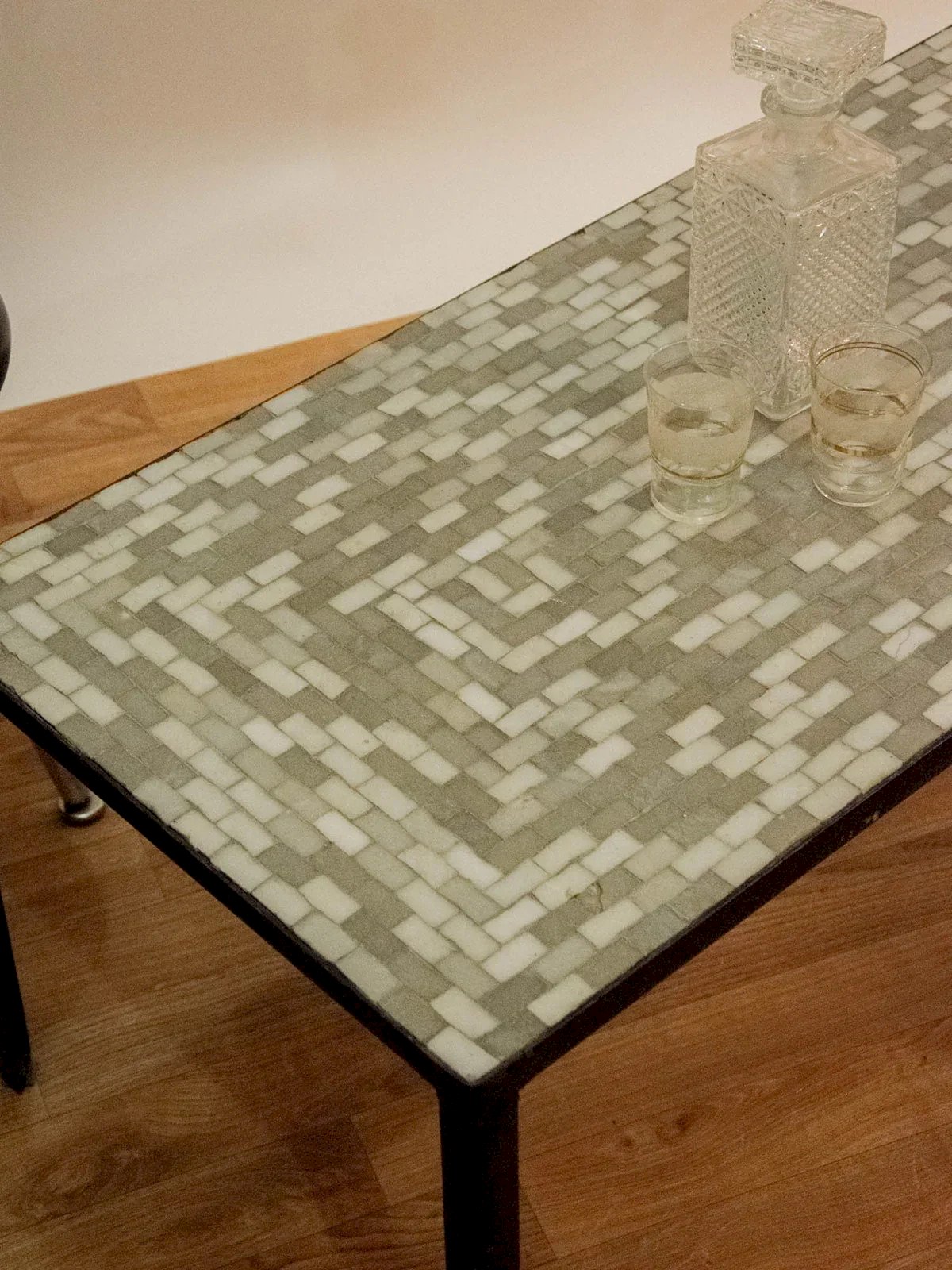This 1960s Scandinavian chair combines retro design and comfort. Its white boucle fabric seat and backrest add softness and elegance. The dark wood structure highlights the simple and refined style of the era. Ideal for a living room, dining room, or office, it easily integrates into various interiors. A vintage piece that combines aesthetics, comfort, and character. Length: 100 cm Width: 46 cm Height: 40 cm Condition: Used: Item has been used. Item shows some signs of superficial wear... Used: Item has been used. Item shows some signs of superficial wear, fully operational and functioning correctly. It may be a demonstration model or an item returned to the store after a short period of use. any potential imperfections. Brand: Debongout Type: Vintage find Material: Ceramic, Metal Style: Contemporary Custom: Coffee tables