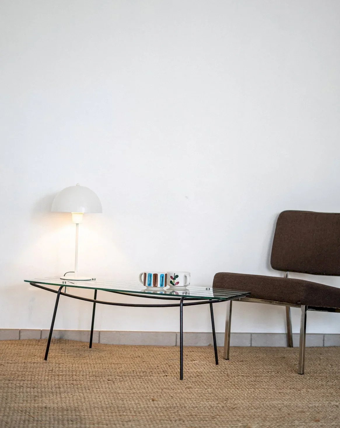 Discover this charming coffee table from the 50s-60s, an iconic piece of mid-century style. Its ribbed and striped glass top adds subtle elegance, while its tubular metal legs ensure both lightness and sturdiness. A few small signs of use testify to its history, adding character to its timeless design. The screws are chrome-plated, enhancing the whole with this refined detail. A must-have for vintage decor enthusiasts! Length: 102 cm Width: 45 cm Height: 35 cm Condition: Used: Item that has been used. Item showing some superficial signs of wear, fully operational and functioning correctly. It may be a demonstration model or an item returned to the store after a short period of use. Any imperfections should be noted. Brand: Debongout Type: Vintage find Material: Glass, Metal Style: Contemporary Customizable: Coffee tables.