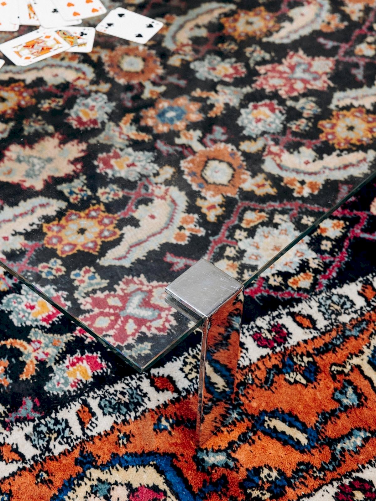Discover our elegant coffee table with a square glass top measuring 1 meter, combining lightness and modernity. Its small, straight metal legs add a contemporary touch while ensuring optimal stability. Perfect for enhancing your living room, this table fits seamlessly into any interior style, offering a practical surface while remaining aesthetically pleasing. Bring a touch of sophistication to your living space with this refined choice. Length: 100 cm Width: 100 cm Height: 28 cm Condition: Used: Item has been used. Item shows some signs of superficial wear... Used: Item has been used. Item shows some signs of superficial wear, fully operational and functioning correctly. It may be a demonstration model or a store-returned item after a short period of use. Any possible imperfections. Brand: Debongout Type: Vintage product Material: Glass, Metal Style: Contemporary Custom: Coffee tables