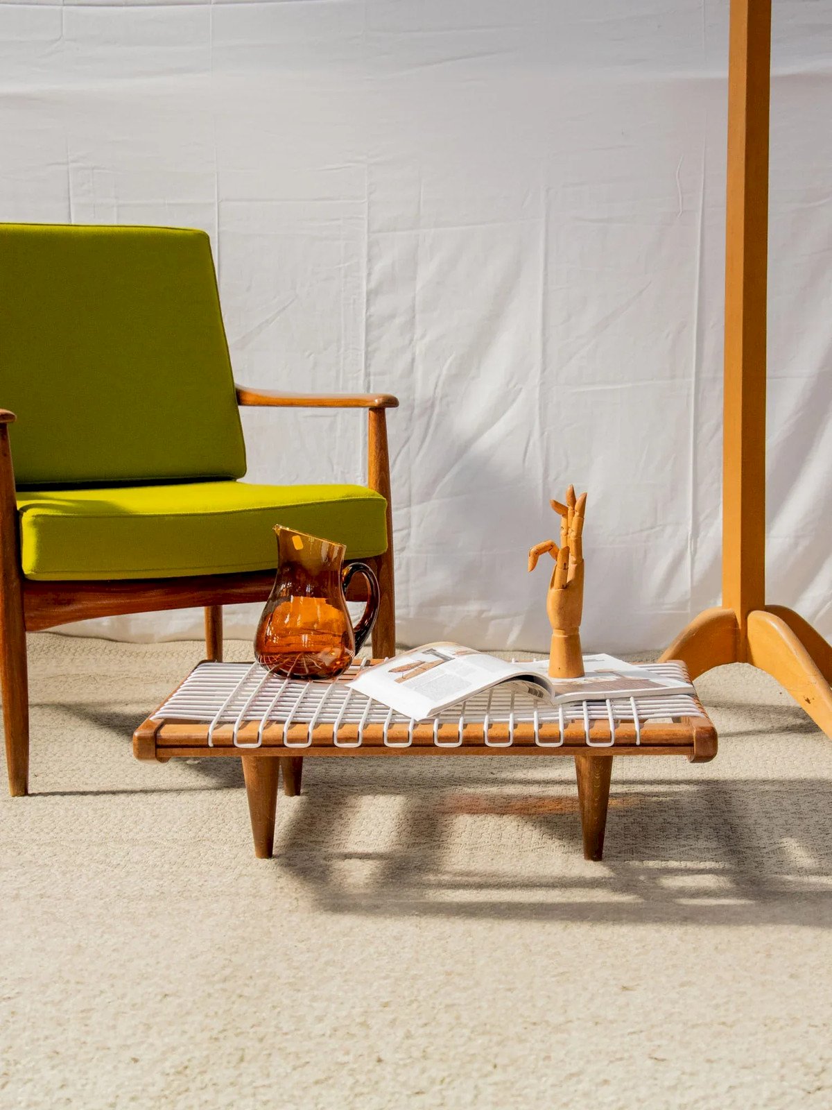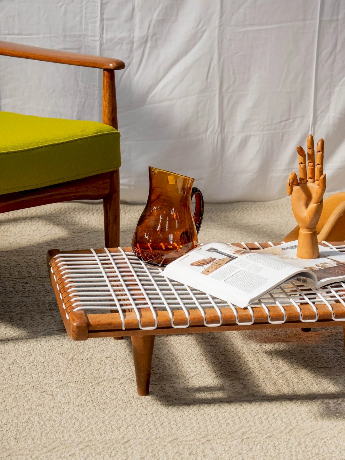 Discover this very low coffee table with a unique design that will bring a modern touch to your interior. Its white scoubidou string top combines lightness and originality, while its wooden structure ensures robustness and elegance. Ideal for contemporary spaces, this table is perfect for both relaxation moments and aperitifs with friends. Adopt a bold style while keeping it simple! Length: 70 cm Width: 50 cm Height: 18 cm Condition: Used: Item has been used. Item shows some signs of superficial wear... Used: Item has been used. Item shows some signs of superficial wear, fully operational and functioning correctly. It may be a display model or an item returned to the store after a short period of use. any possible imperfections. Brand: Debongout Type: Thrifted product Material: Scoubidou, Wood Style: Contemporary Customized: Coffee tables