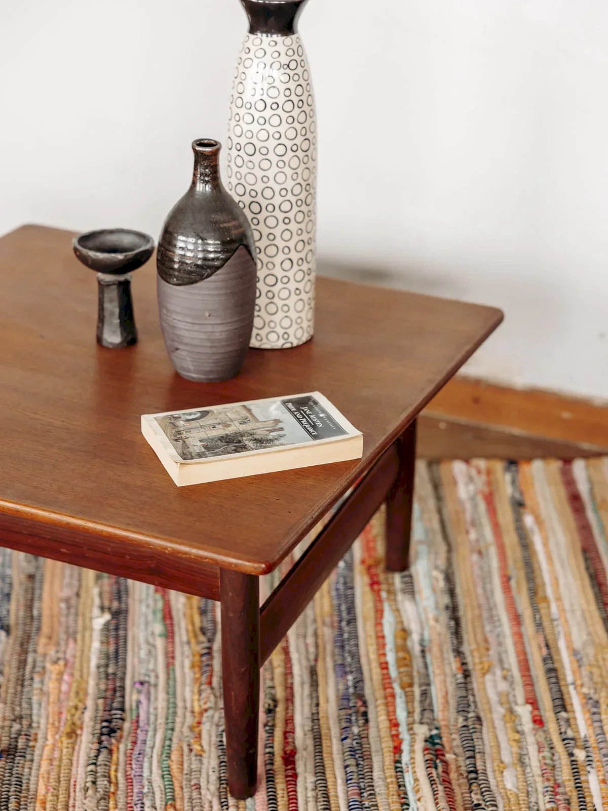 This walnut wood table from the 1960s combines a sleek Scandinavian design with modern functionality. Height adjustable and adaptable, it meets your needs while offering great practicality. Its extendable top allows for flexible use, perfect for different spaces and occasions. A piece of furniture that is both elegant and practical, ideal for adding a retro and functional touch to your interior. Length: 99 cm Width: 58 cm Height: 70 cm Open top: 99 x 116 cm Condition: Used: Item has been used. Item shows some superficial signs of wear, fully operational and functioning correctly. It may be a demonstration model or an item returned to the store after a short period of use. possible imperfections. Brand: Debongout Type: Thrifted product Material: Wood Style: Contemporary Customized: Coffee tables