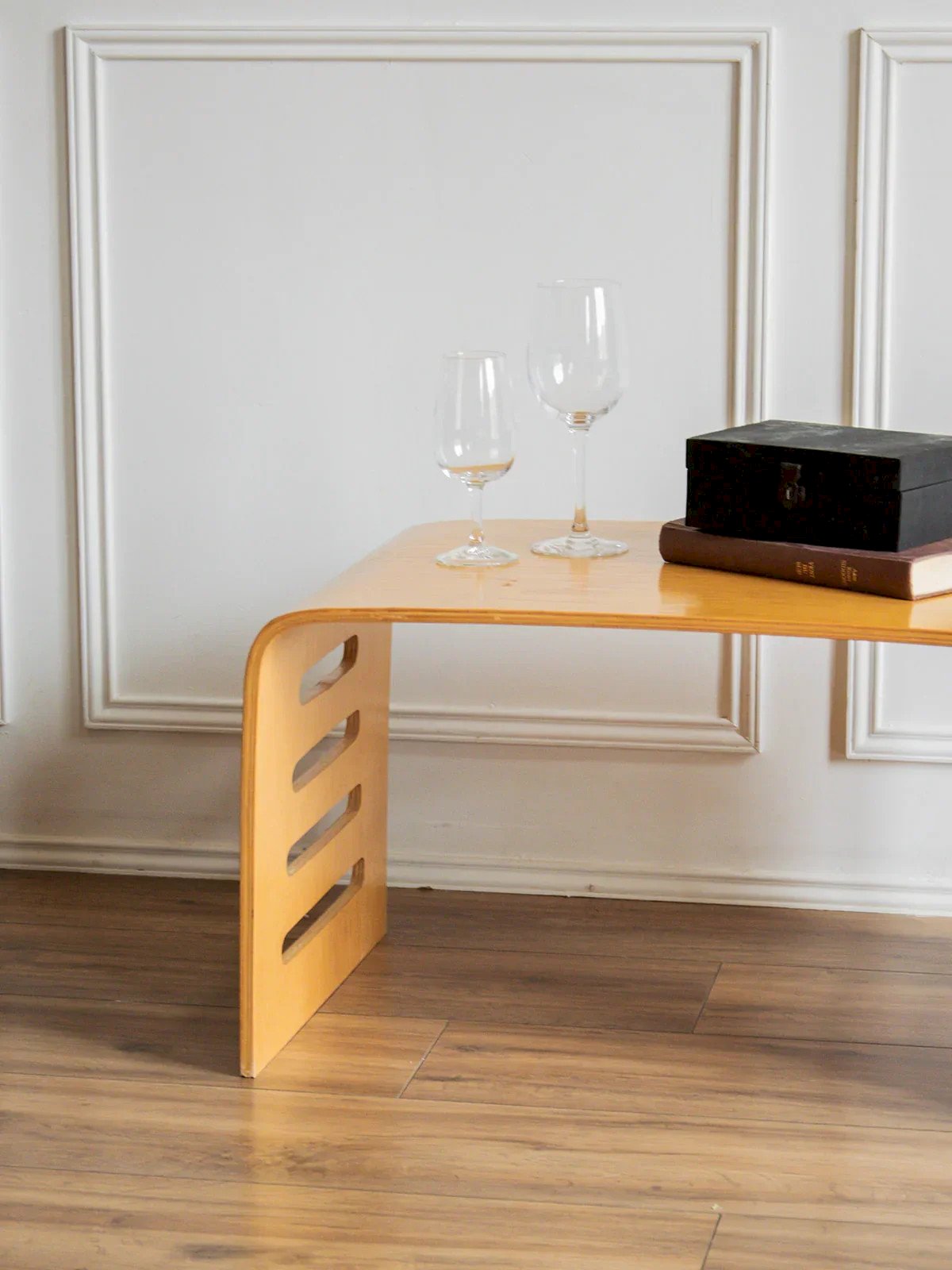 Add a touch of warmth to your interior with our light wood coffee table. This elegantly designed piece features soft curves and delicate stripes, adding a note of authenticity to your space. With its practical dimensions, it is perfect for holding your drinks or books. Sold separately, two items available. Length: 60 cm Width: 40.5 cm Height: 35 cm Condition: Used: Item has been used. Item shows some signs of superficial wear, fully operational and functioning correctly. It may be a display model or an item returned to the store after a short period of use, along with any imperfections. Brand: Debongout Type: Thrifted product Material: Wood Customized: Coffee tables Style: Contemporary