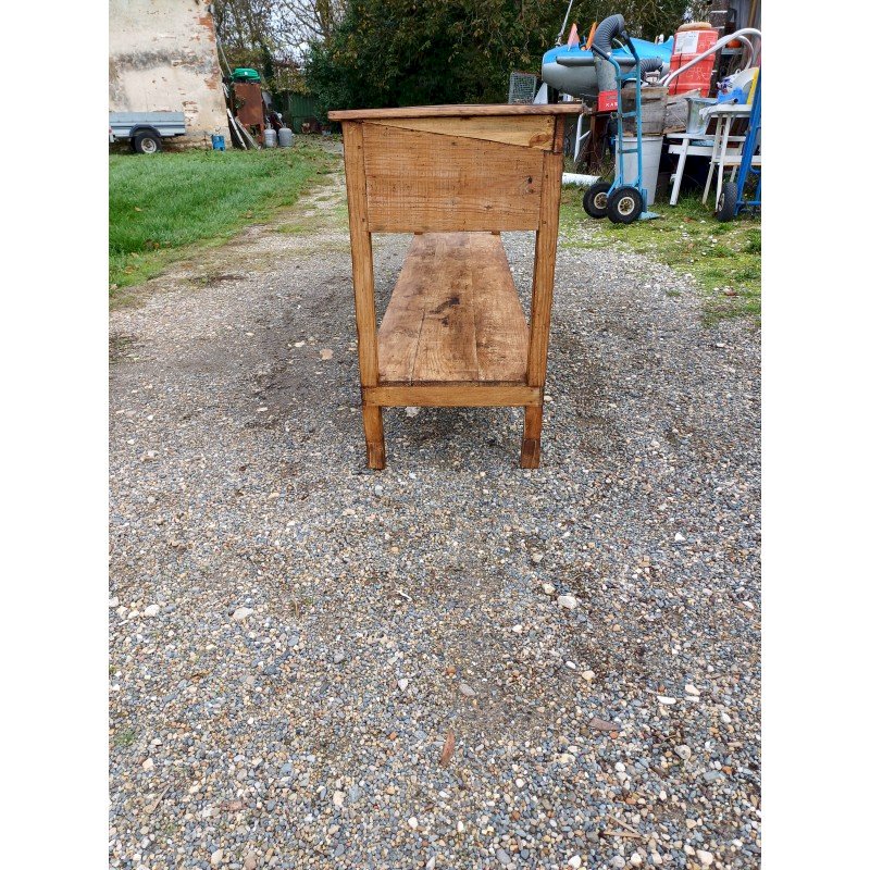 Draper's Table Wood Pine, 1 shelf at the bottom, Height: 83 cm, Length and Width: 210 cm by 52 cm, Weight 50 kg, very good condition.
