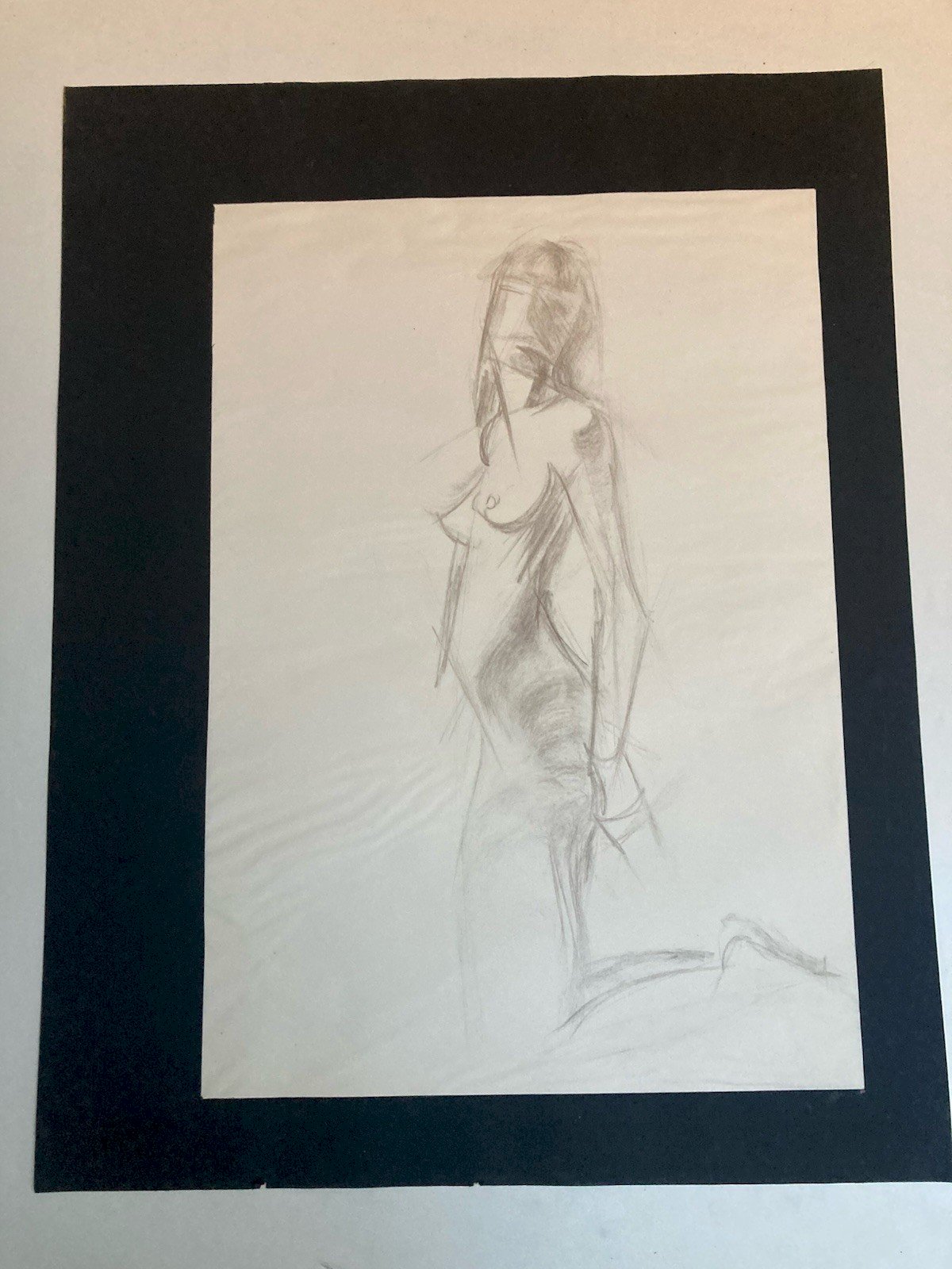 Drawing 1970 Art Crayon Nude Woman Nude Erotic Ancient Post Cubism Paper