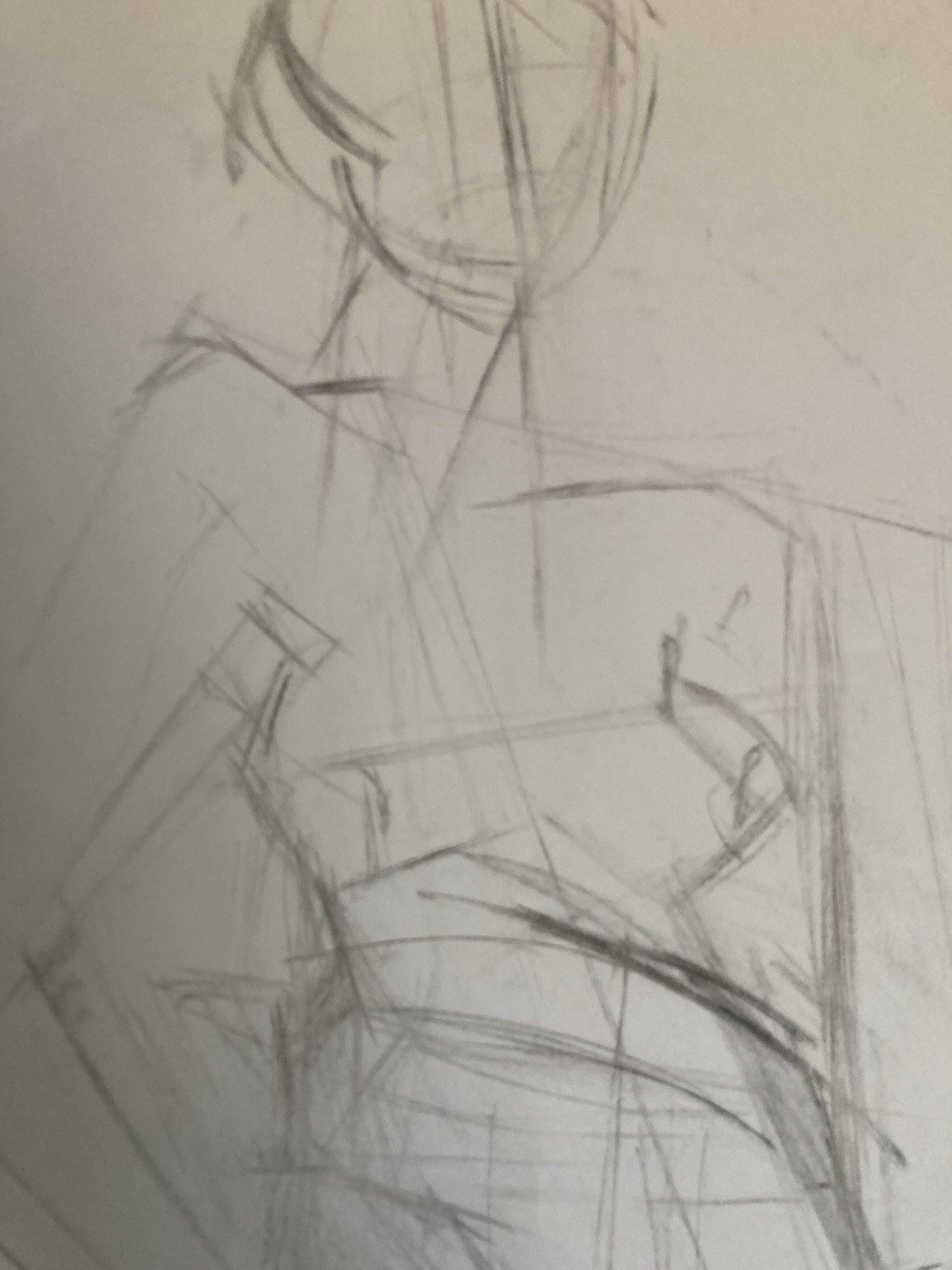 Drawing Art Pencil Woman Nude Naked Erotic Ancient Post-Cubism Paper 1970