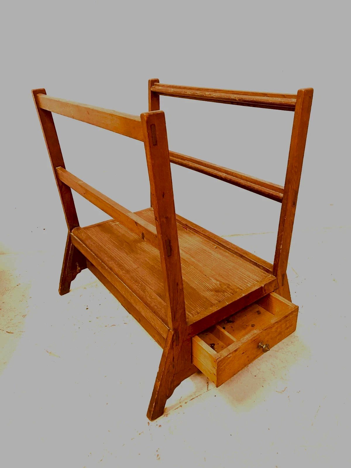 Drawing board door in solid oak A storage drawer in the base Good condition Dimension H 710 x W 64 x D 44 cm XX century Color: Brown Period: Art Deco Height: 70 Material: Oak Length: 64 Width: 44
