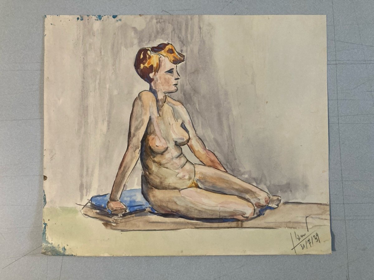 Delivery service: tracked letter Authenticity: Original Type: Drawing Period: 20th century and contemporary Material: Gouache Style: 1940 Genre: Art Deco Theme: Portrait, Self-portrait