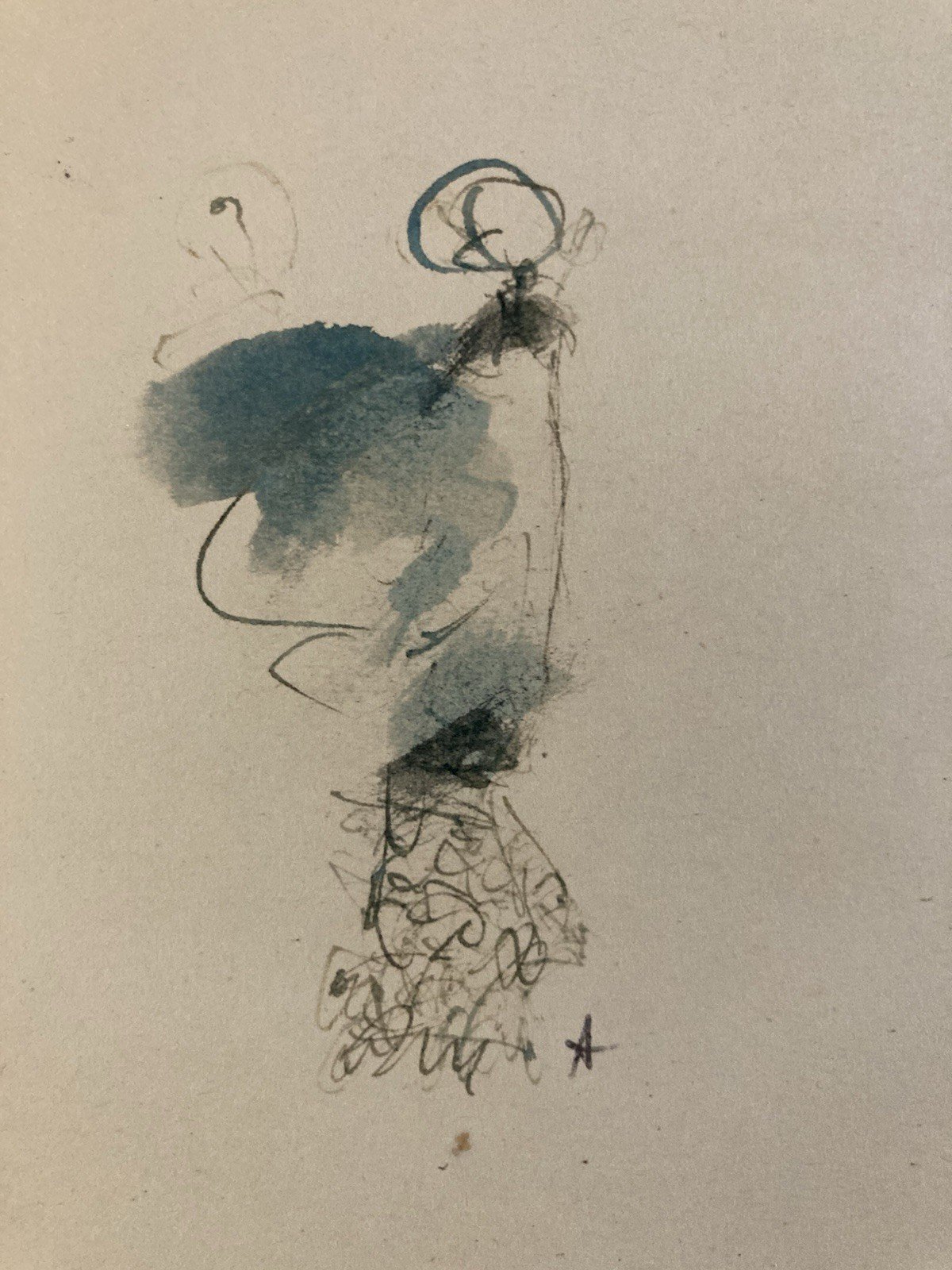 Drawing Wash Ink Portrait Woman Expressionist Annie Perinaux Art