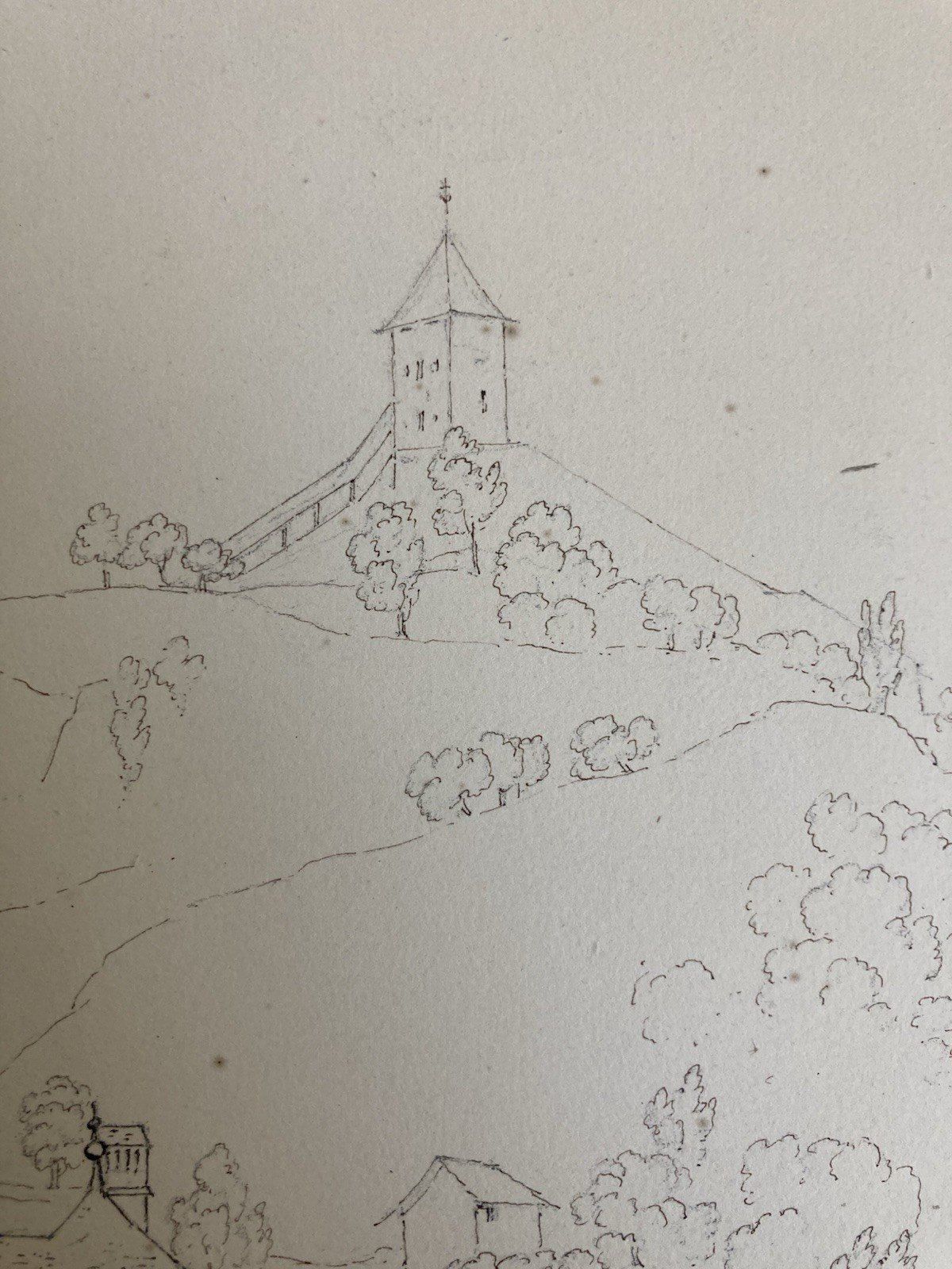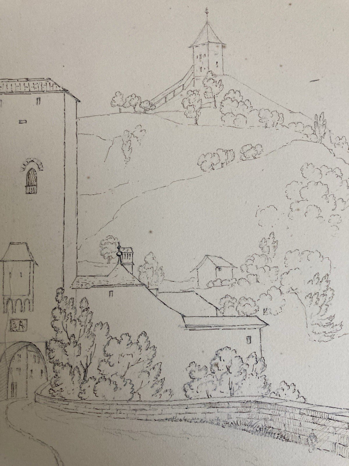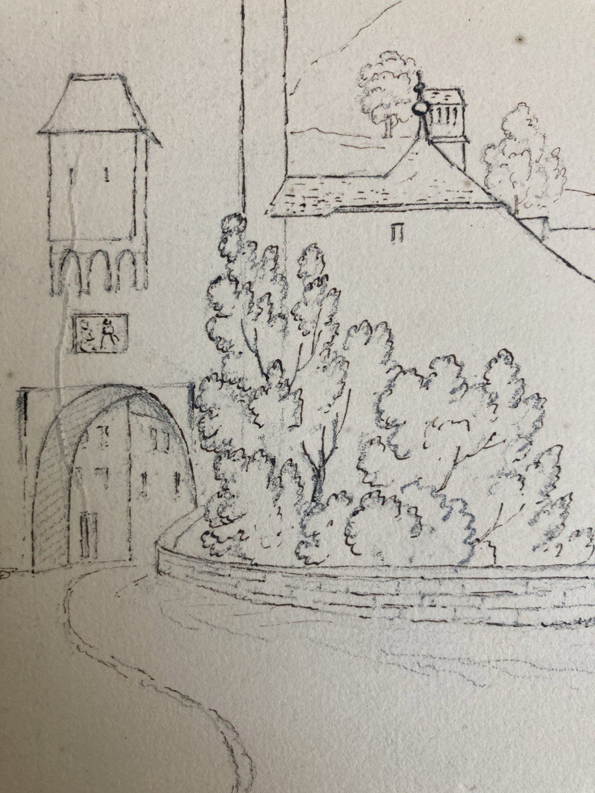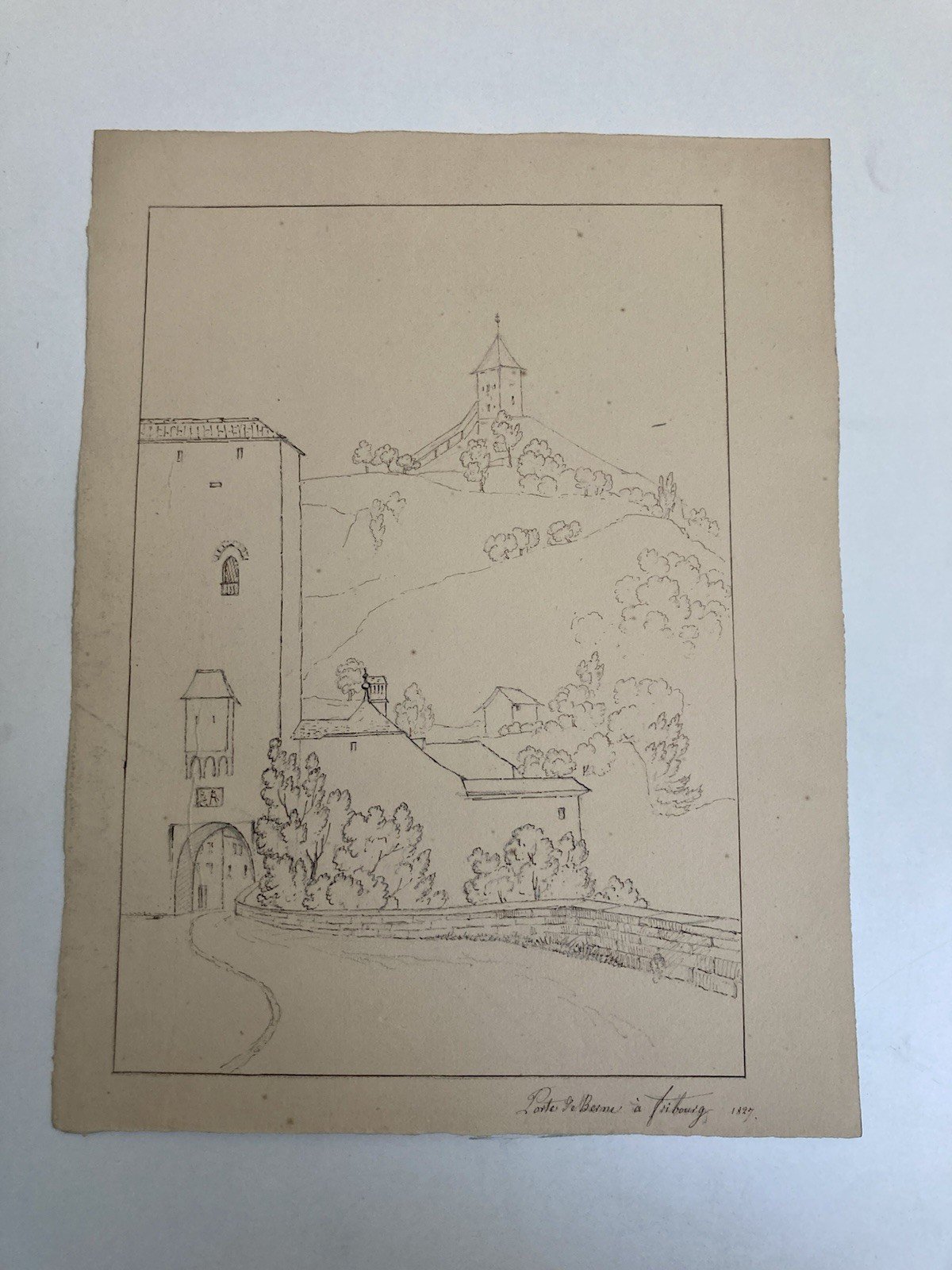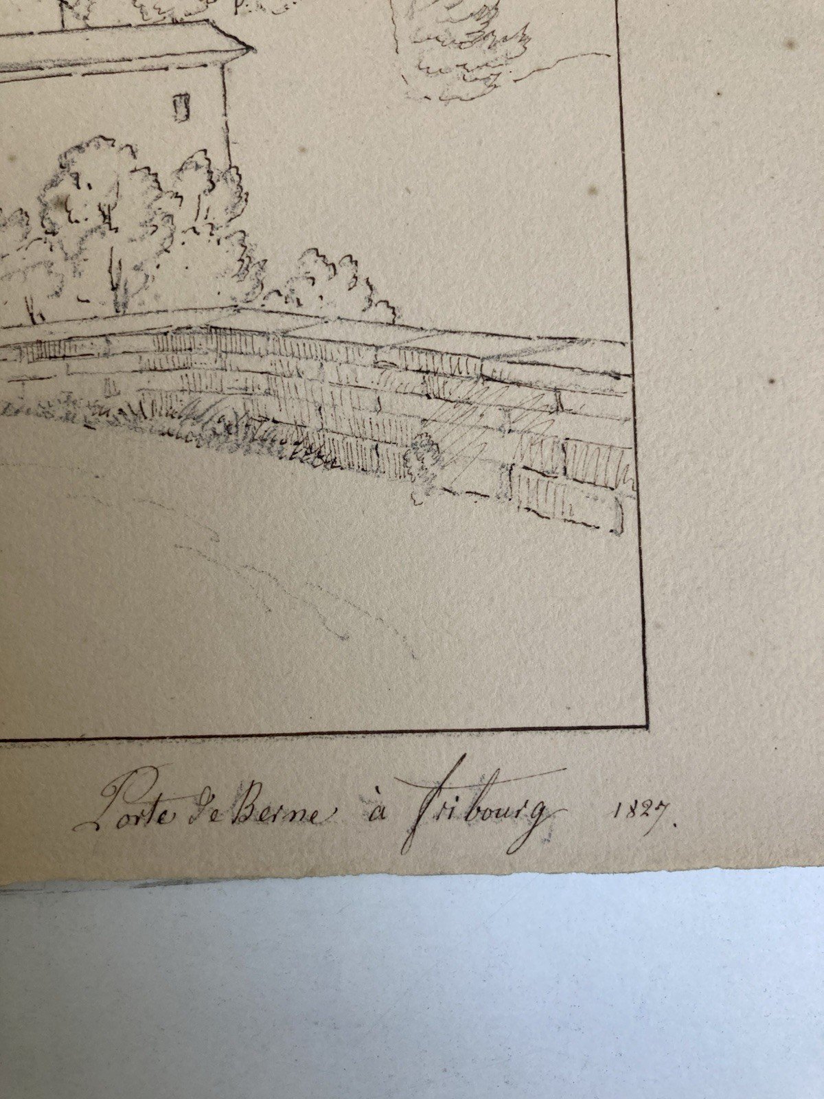 Drawing XIX 1827 Ink To Identify Bern Gate In Fribourg Old