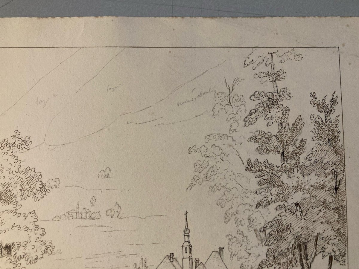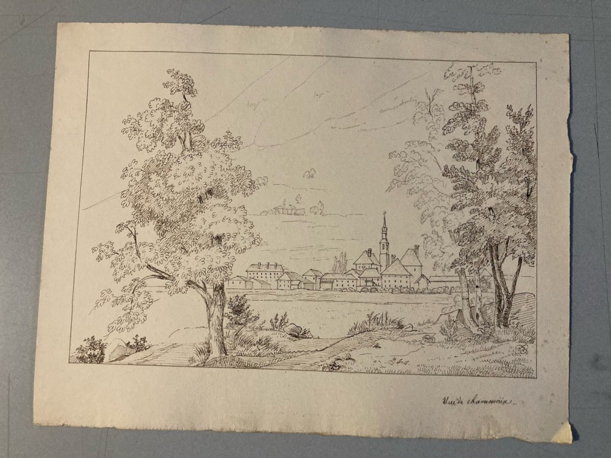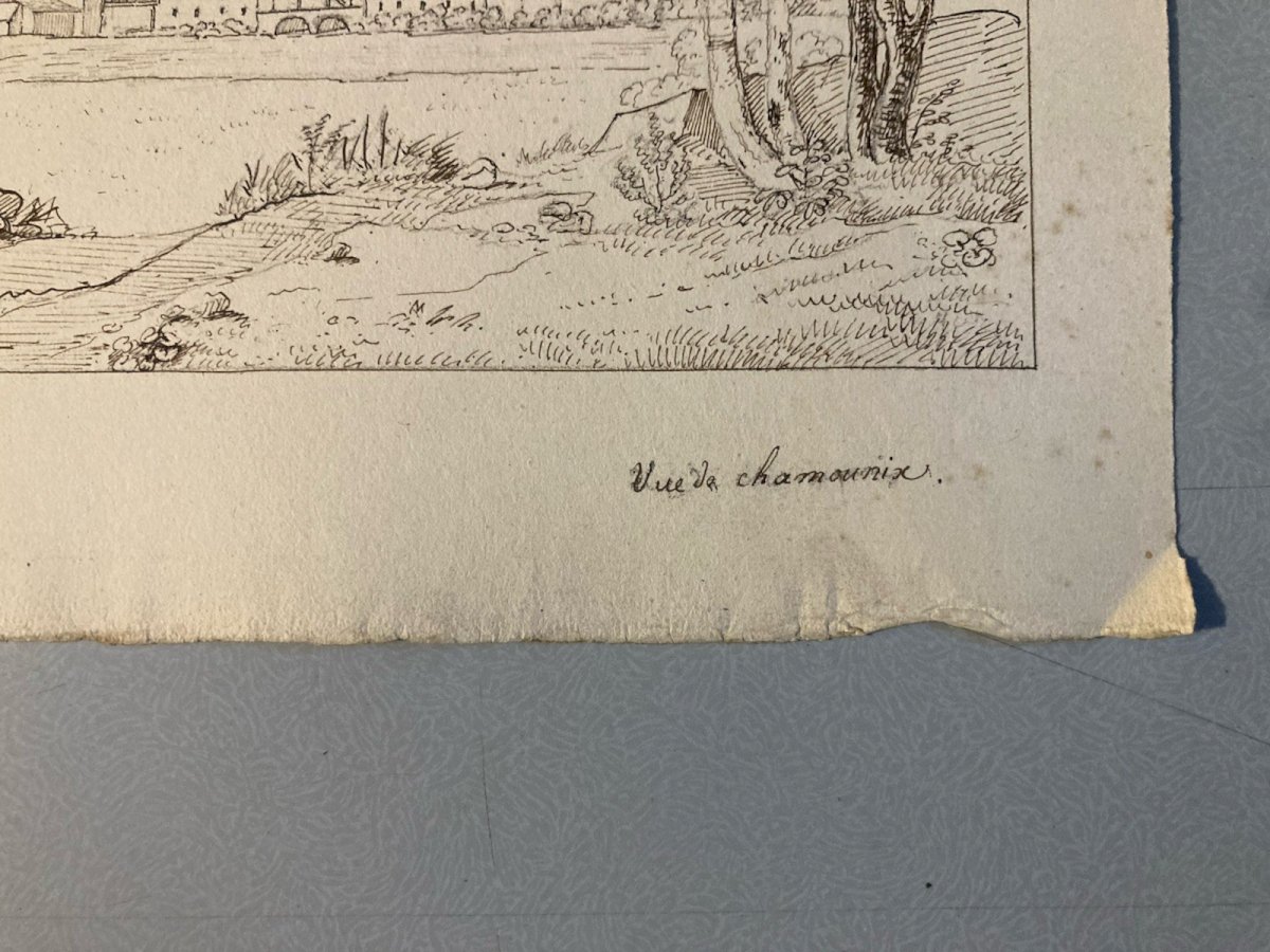 Drawing XIXth 1830 Ink To Identify P Chamonix Old Tree Mont Blanc