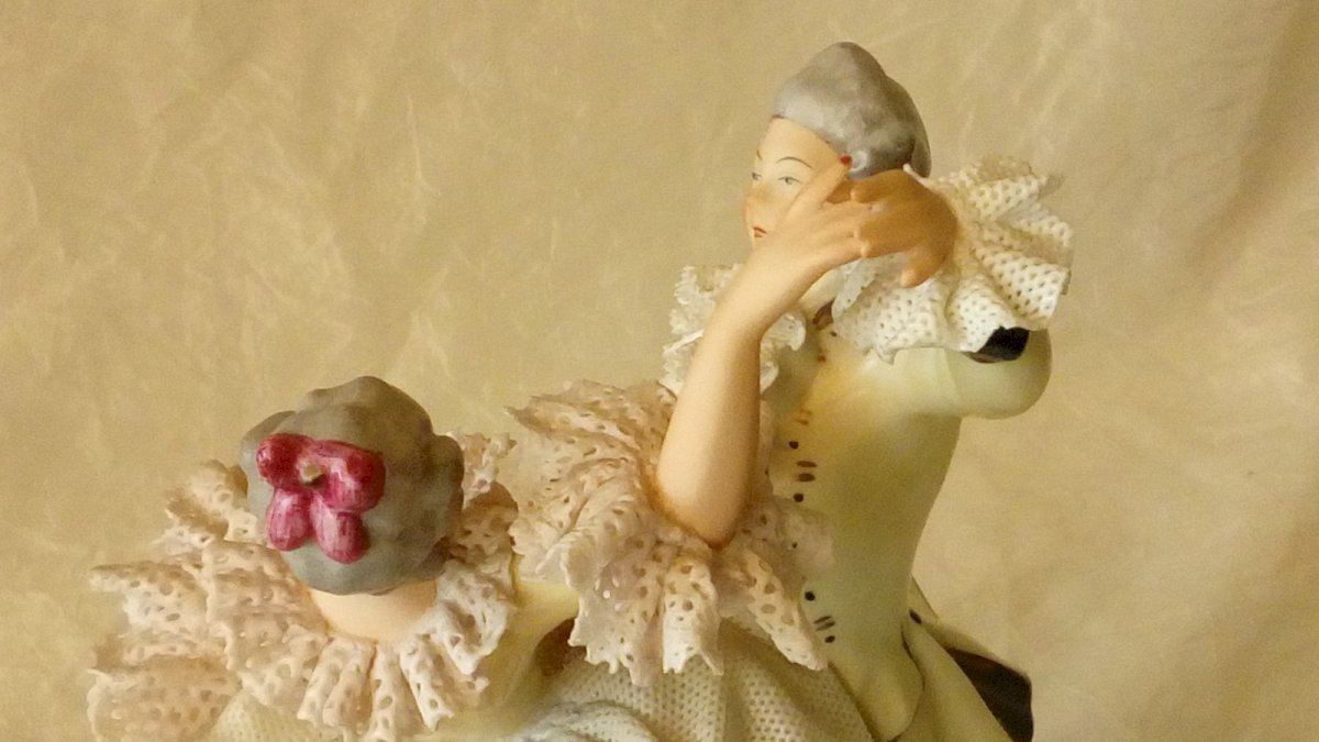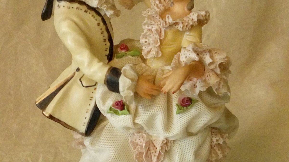TRES BEAU COUPLE DE DANSEUR EN PORCELAINE SIGNE D'UNE COURONNE STYLE DRESDEN HAUTEUR 19.50 cm LARGEUR 11.50 cm PROFONDEUR 8 cm PETIT MANQUE SUR LE DERRIÈRE DE LA ROBE VISIBLE SUR LES PHOTOS Pays de fabrication:Allemagne