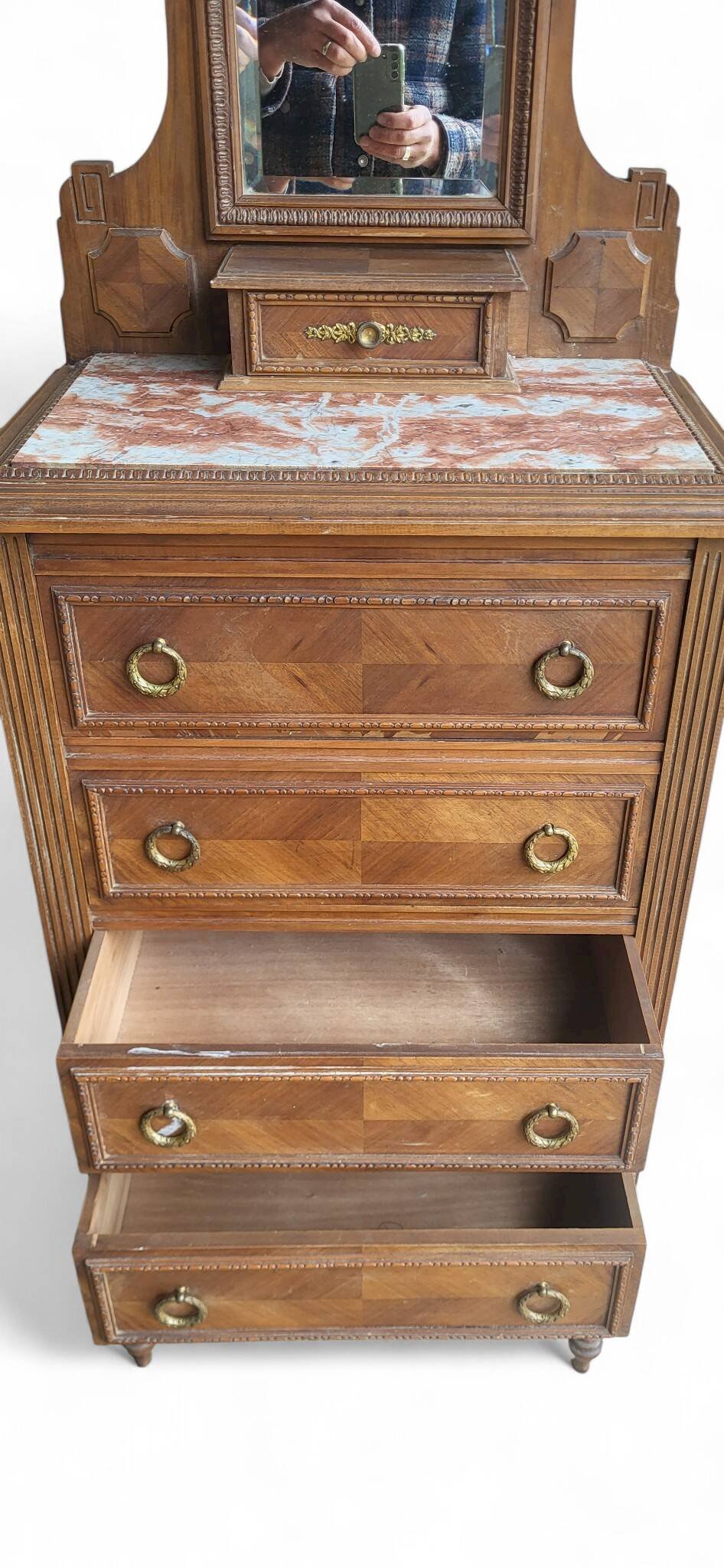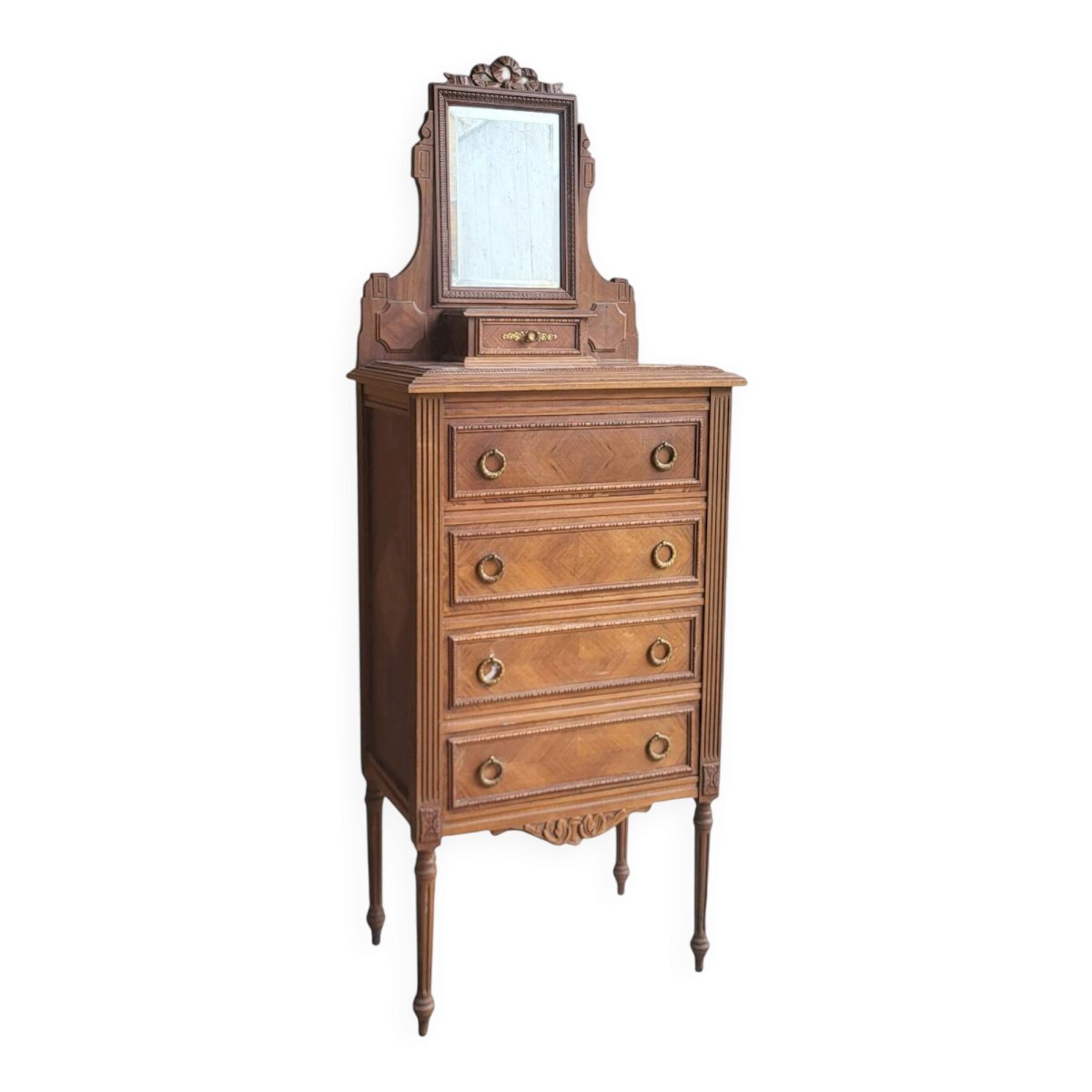 Dresser, compact size. Height 151.5 cm. Width 55.5 cm. Depth 35 cm. It is in good condition with normal signs of wear and age. Delivery in Paris and nearby suburbs 45 euros, please ask me. L: 55 W: 35 H: 151