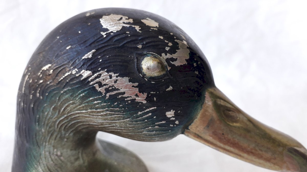 Metal bottle opener shaped like a colorful duck head, marked "Duck Paris."