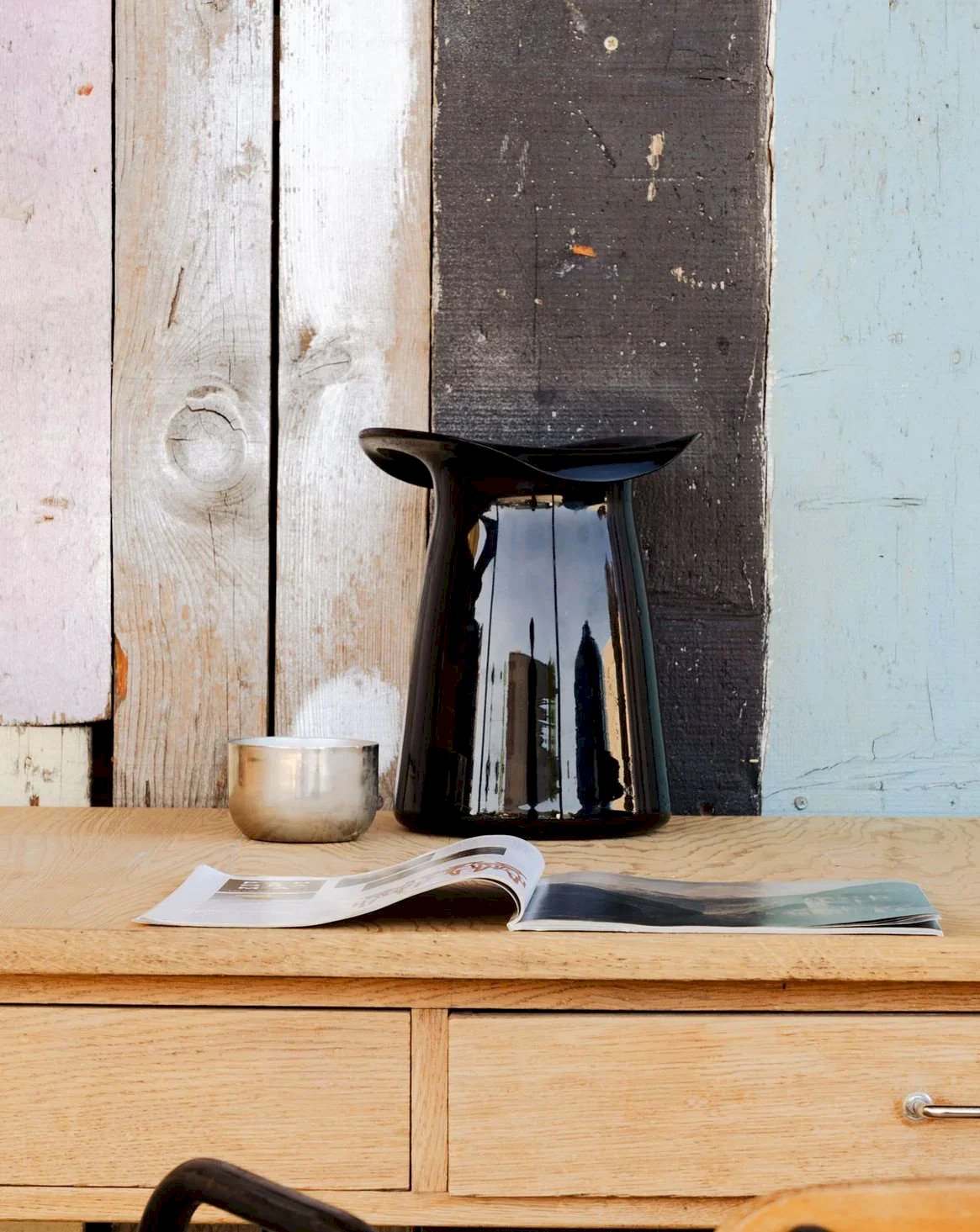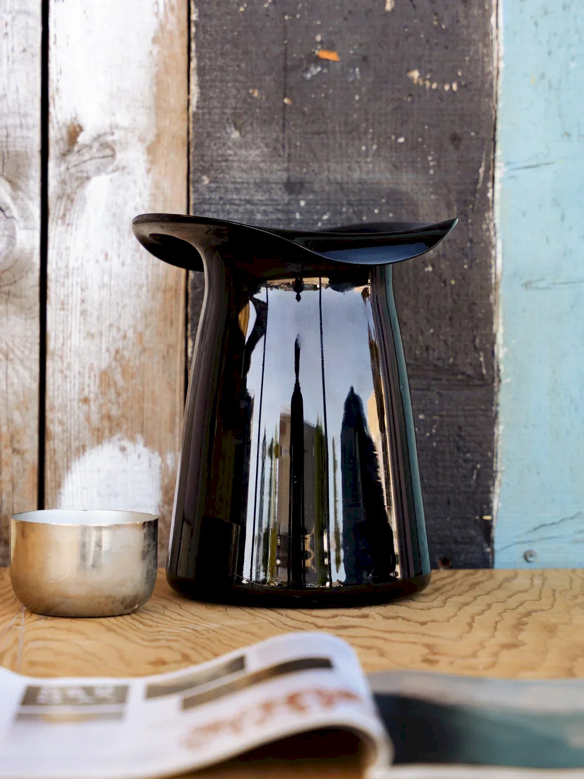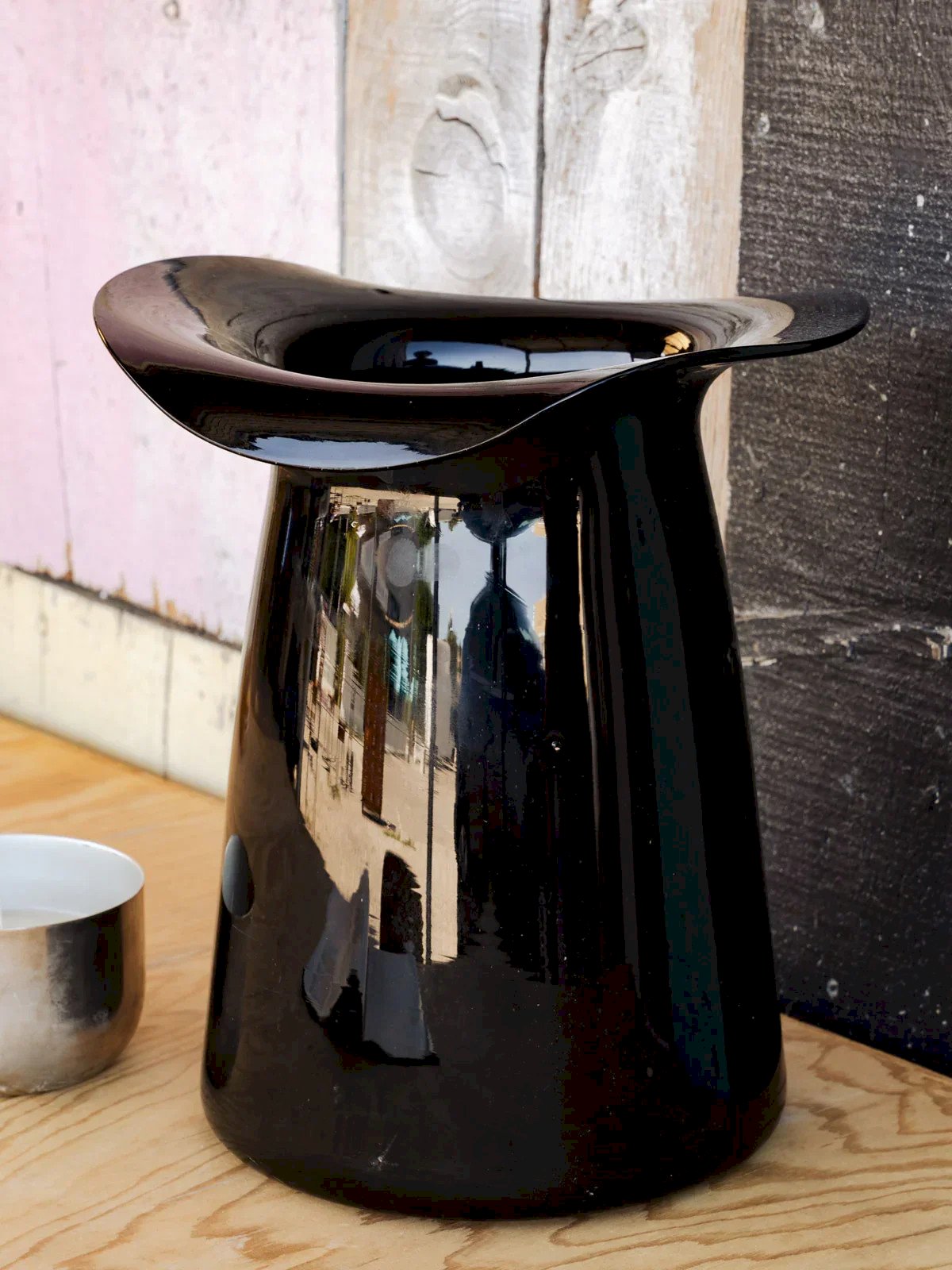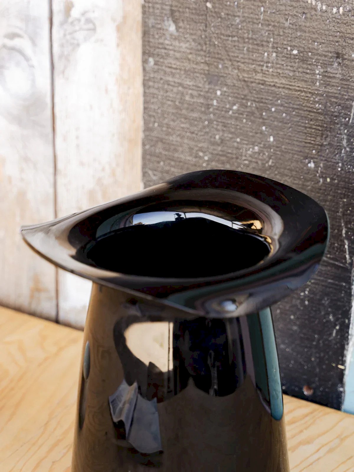 Add a touch of elegance to your interior with this black glass vase. Its modern and sleek silhouette will fit perfectly into any decor, whether on a table, a shelf, or a sideboard. Ideal for showcasing your flower bouquets or as a decorative element on its own, this vase is both refined and timeless. Its transparent glass finish and deep color add a note of sophistication to your space. Treat yourself to a design piece that will enhance your decor! Length: 24 cm Width: 21.5 cm Height: 27 cm Diameter: 13.5 cm Condition: Used: Item that has been used. Item showing some signs of superficial wear, fully operational and functioning properly. It may be a demonstration model or an item returned to the store after a short period of use. potential imperfections. Brand: Debongout Type: Thrifted product Material: Glass Style: Contemporary