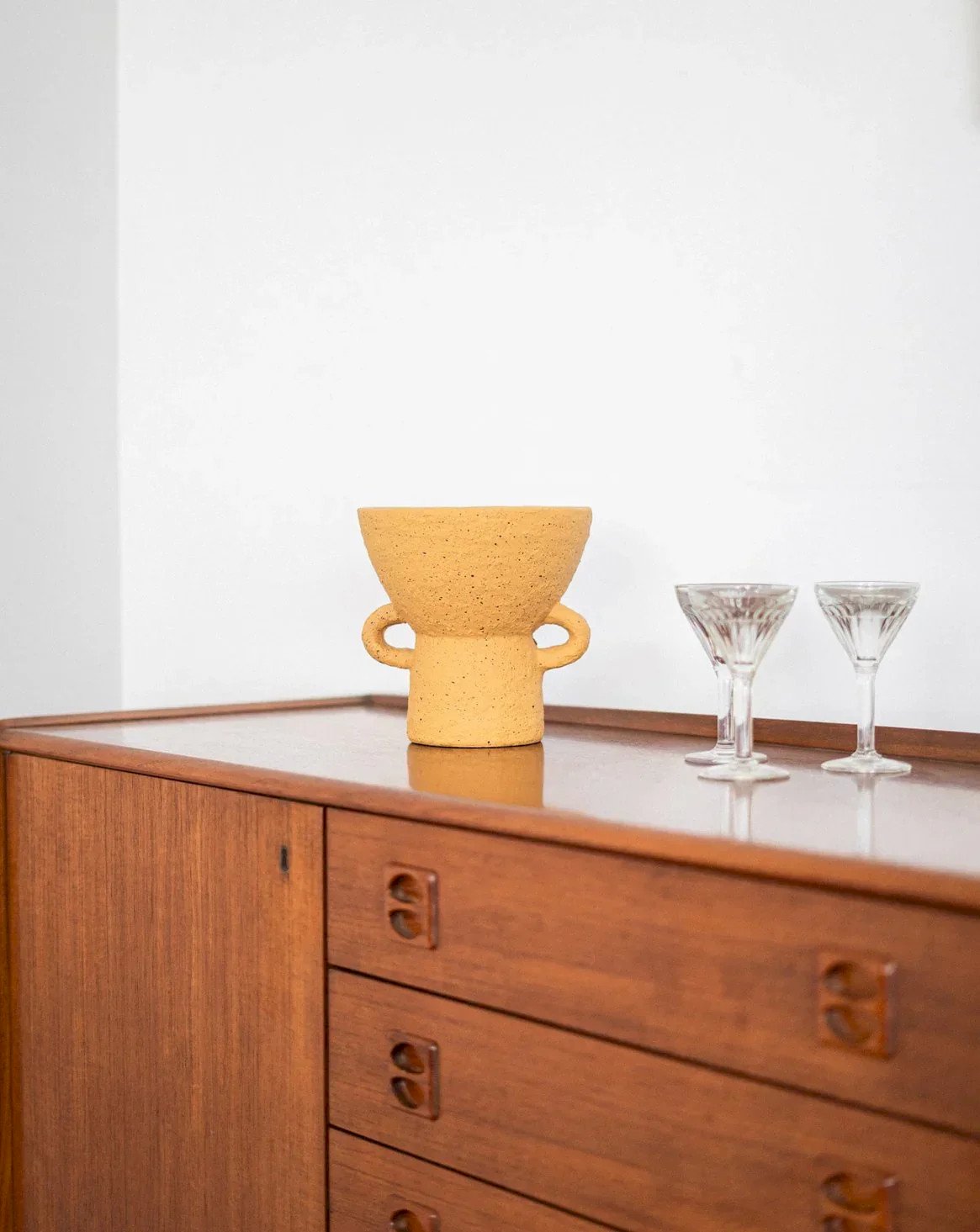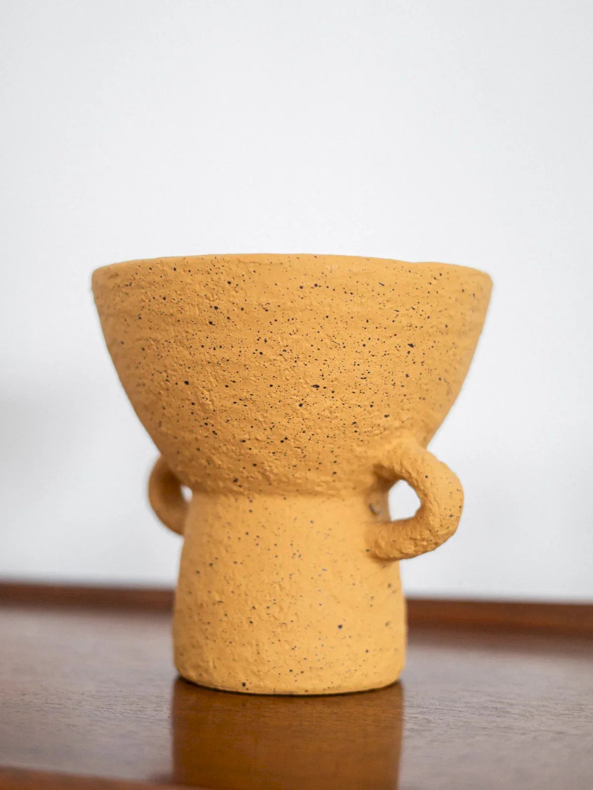 Add a touch of color and elegance to your interior with this textured ceramic vase in vibrant mustard yellow. Its unique design and textured finish give it a handcrafted charm that fits perfectly into any decor style. Ideal for being displayed alone as a decorative object, this vase stands out for its quality and originality. A must-have for contemporary decor enthusiasts! Height: 20.5 cm Diameter: 20.5 cm Condition: Used item. Item shows some signs of superficial wear... Used item. Item shows some signs of superficial wear, fully operational and functioning correctly. It may be a demonstration model or an item returned to the store after a short period of use. potential imperfections. Brand: Debongout Type: Thrifted product Material: Ceramic Style: Contemporary